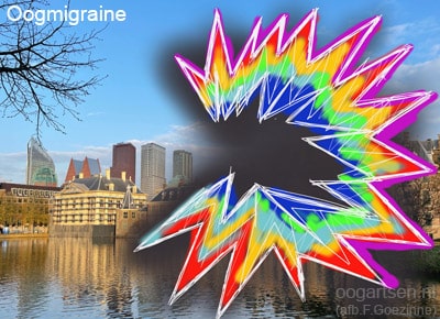 Oogmigraine en dat voel ik altijd aankomen. Eerst krijg ik een zwarte stip in het midden van mijn gezichtsveld die steeds groter wordt, zodat ik steeds minder kan zien. Dat wordt vervolgens ongeveer dit: