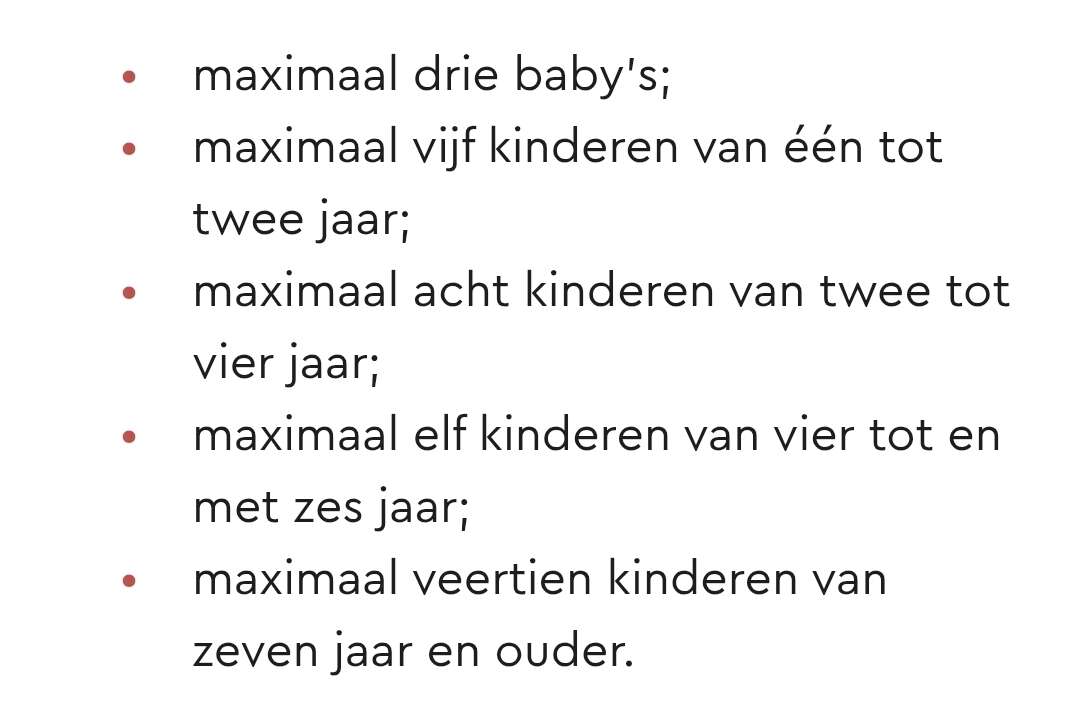 Whoo, wat een verschil met Nederland, hier gelden op de kinderopvang/BSO de volgende aantallen per pedagogisch medewerker: