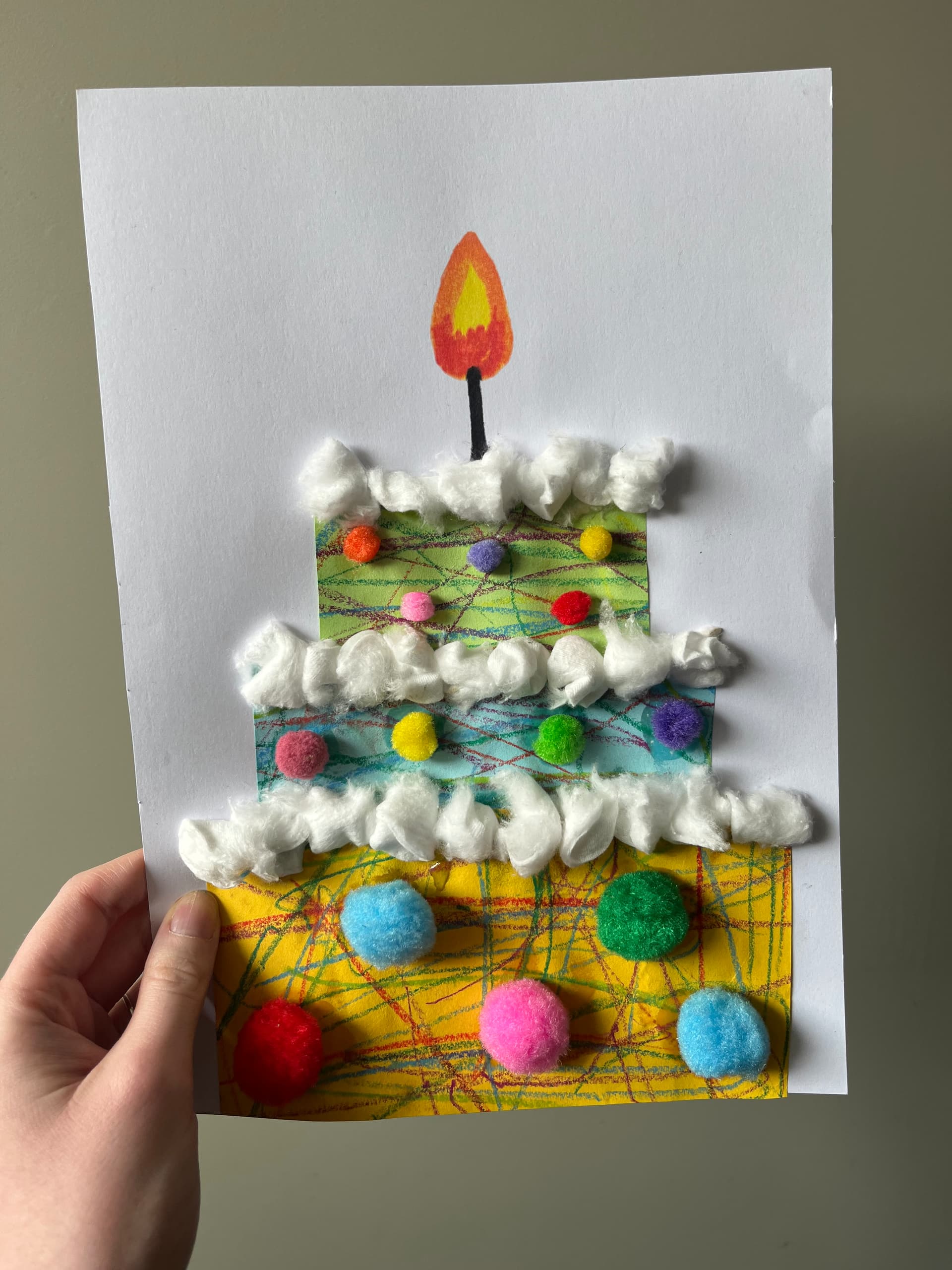 Ik heb met mijn 2-jarige een verjaardagskaart gemaakt.