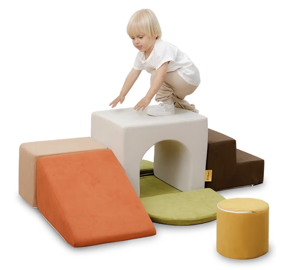 Ons zoontje van 1 die overal op wil klimmen had die blokken geweldig gevonden, daar heb ik toen ook over zitten dubben. Nu met 2 gaan wij hem een klimdriehoek en glijbaan geven, hij is gek op klimmen en glijden maar met 1 had hij dat nog te moeilijk gevonden. Dus ik zou beginnen met de kussens!