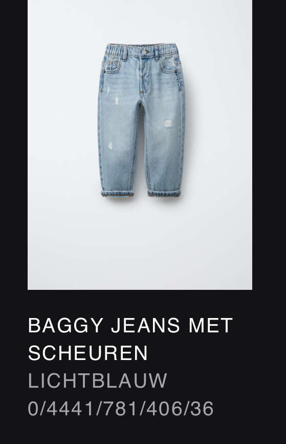 Deze in 116 zit ook goed, met twee keer omslaan bij de pijpen maar goed bij buik en benen. Lekker los (dat vindt ze fijn).