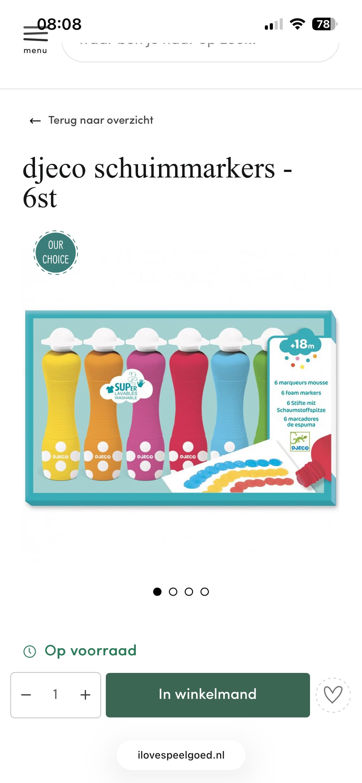 Hema heeft deze stiften ook. Mijn dochter van bijna 3 vindt het volgens mij niet heel leuk, ze pakt het in ieder geval niet uit zichzelf en als ik alleen dit geef zet ze een paar stippen en wil ze het vervolgens als stift gebruiken of vraagt ze om stiften. Omdat de vloeistof best dun is vind ik het ook sneller troep geven dan drogere stiften. En de dop krijgt ze er niet goed op en af. Djeco heeft ook een knutselset met volgens mij 2 van deze kleuren en kleurplaten erbij die je dan met stipjes kan vullen, dat ziet er wel geinig uit.