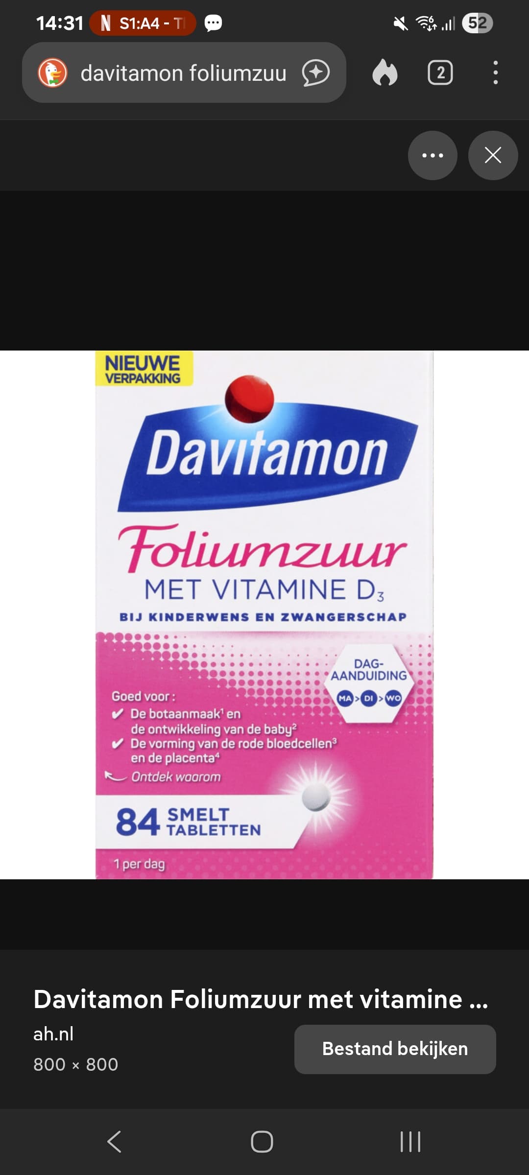 Ik vond de foliumzuur van davitamon klein en ze smaakten lekker.