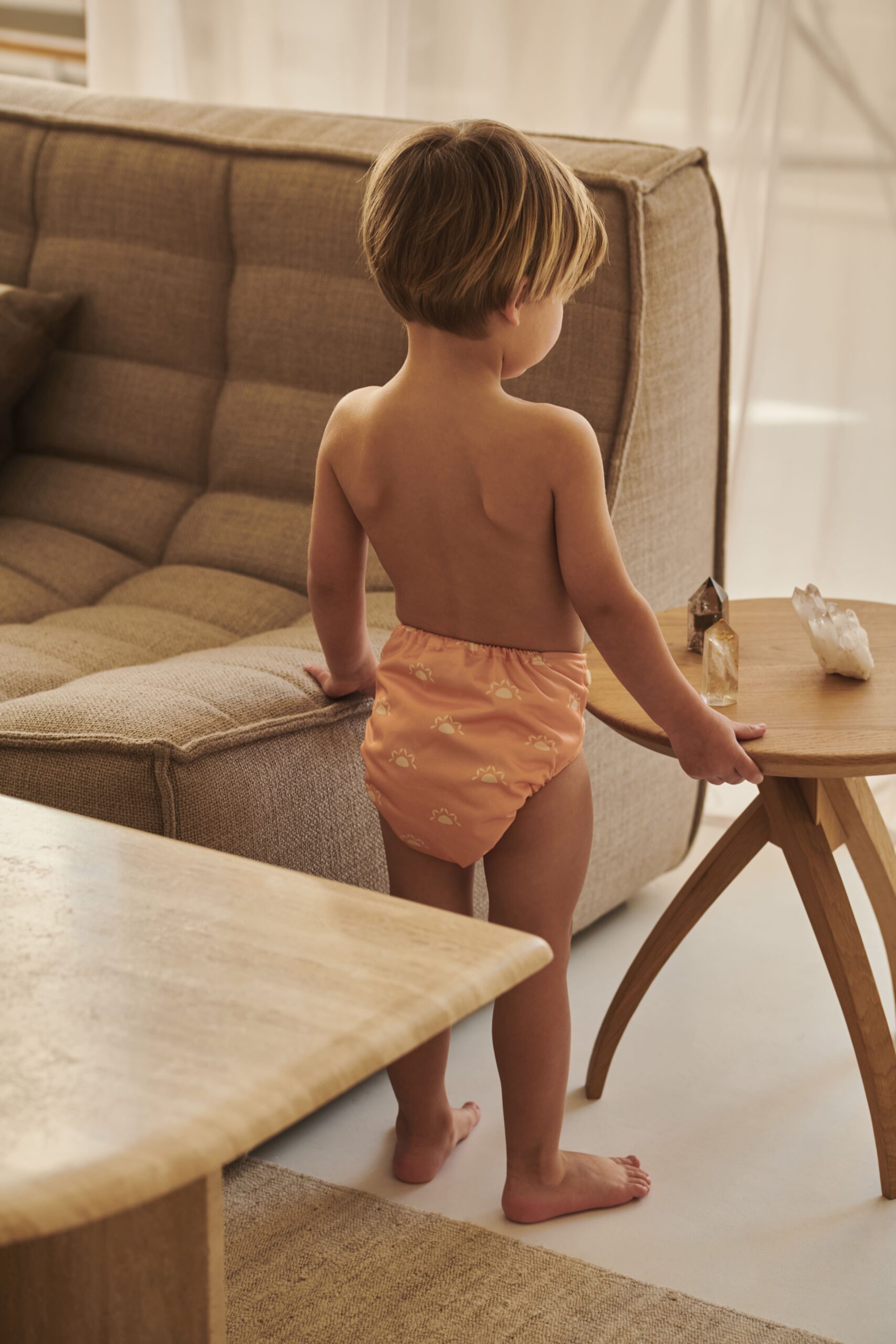 Een zwemluier + badpak / zwembroek zal qua comfort toch niet heel anders zijn dan een gewone luier + romper / onderbroek?