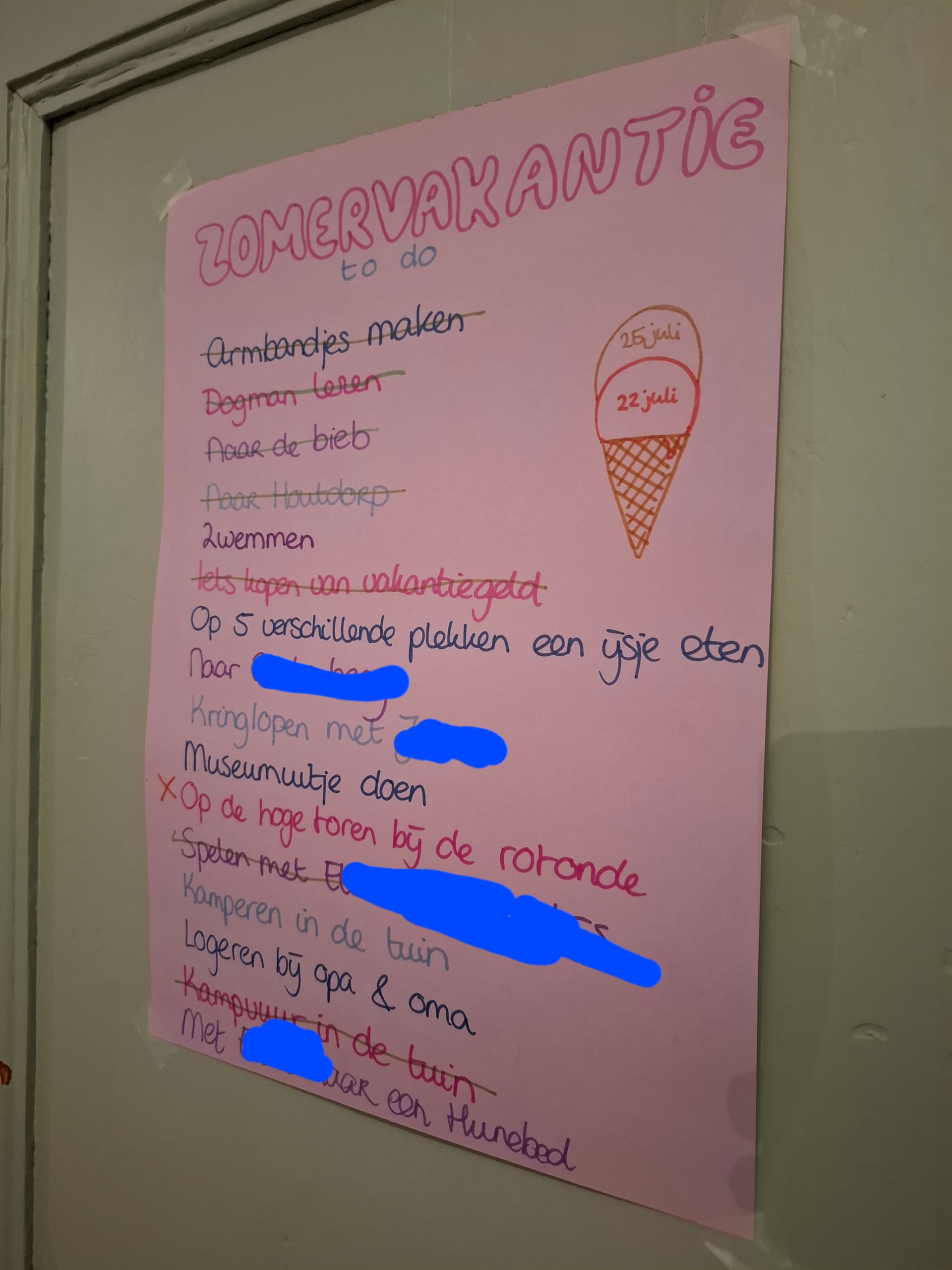 Ik ga dit jaar niet op vakantie en heb met mn kids (9, 8 en 3) deze lijst gemaakt en in huis hangen. Is echt leuk om steeds weer iets af te vinken.