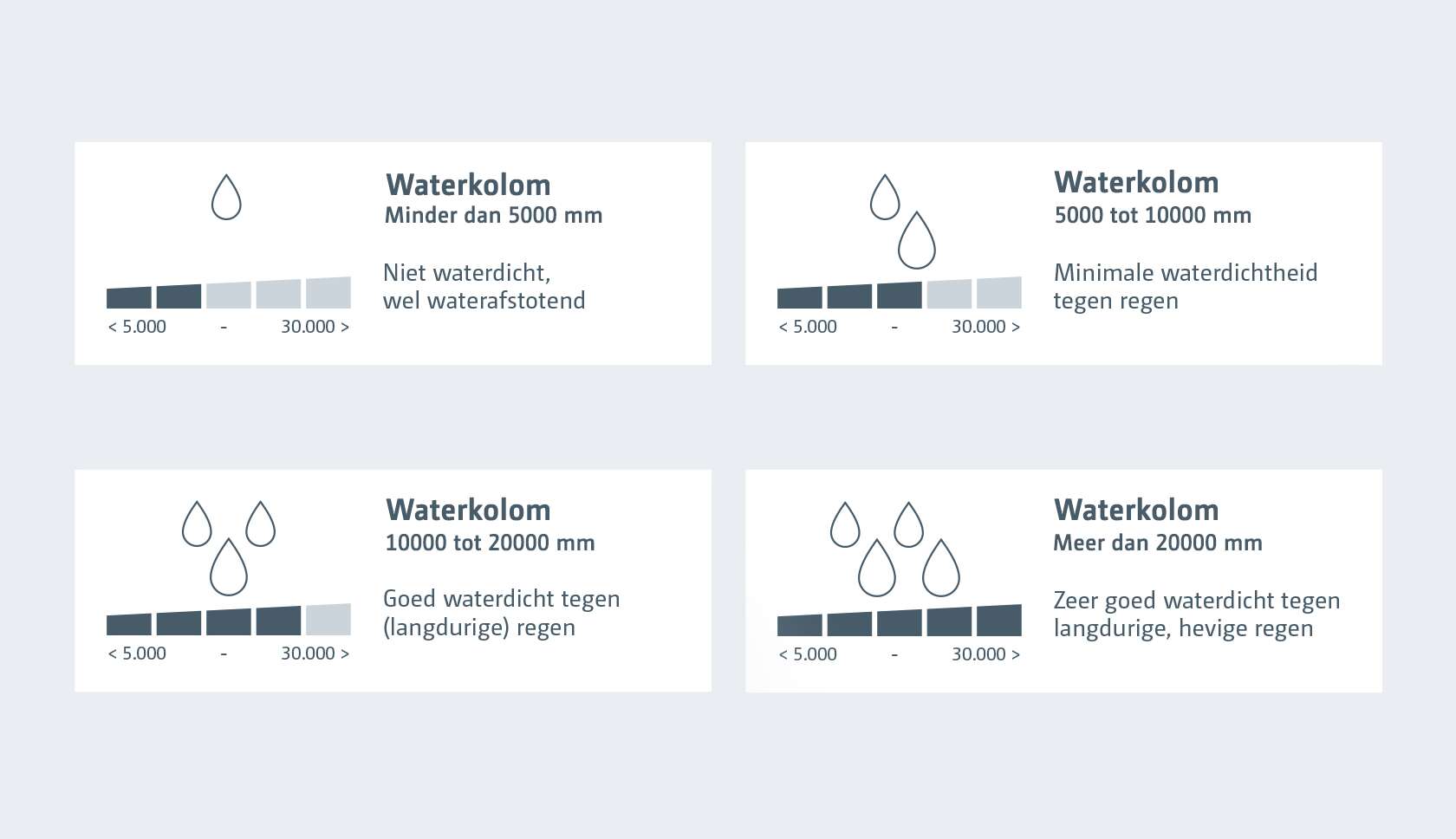 Ligt aan de waterkolom van het kledingstuk, niet alle regenkleding is 100% waterdicht omdat het dan heel zweterig wordt om erin te bewegen. Veel regenkleding voor kinderen heeft een lagere waterdichtheid maar is daardoor wel ademend. Het weerstaat dan bijv prima een harde regenbui, en houdt de kleren droog als je kind in een natte speeltuin speelt, maar als het een kwartier in een plas gaat zitten dan lekt het er wel doorheen. Bij veel merken staat de waterkolom wel in de productbeschrijving, dat geeft een indicatie