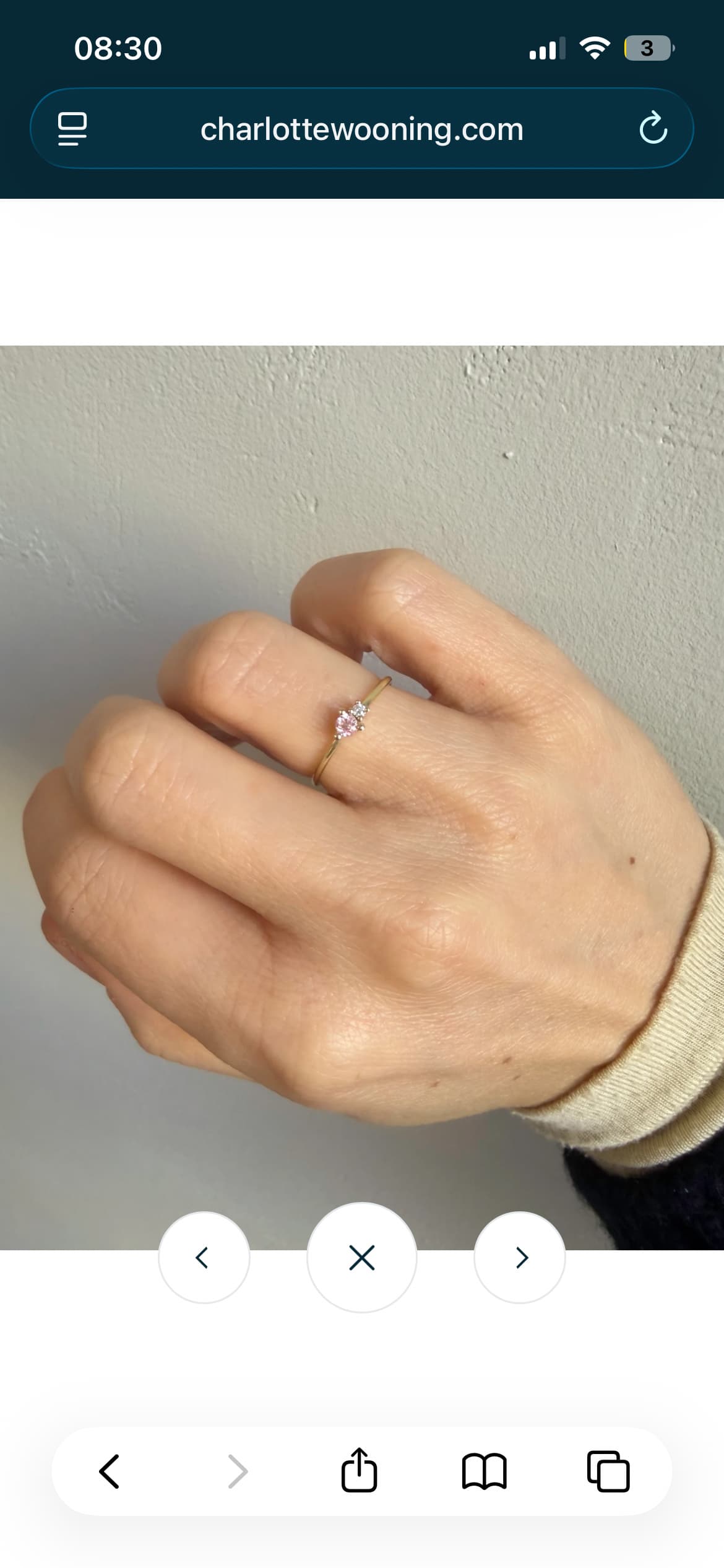 Ik heb wel een soort van klassieke combi van trouw en verlovingsring, maar ik draag ook elke dag andere gouden ringen met gekleurde stenen die ik voor mezelf heb gekocht. Dus ik zou zeggen: ga ervoor! Jij moet het elke dag dragen en het moet bij jou passen! Het enige wat mij zelf tegenhield om een heel ‘aparte’ trouwring te kiezen is dat ik zeker wilde weten dat ik ‘m over 30 jaar ook nog mooi en passend zou vinden. En een dun ringetje is wat minder sterk dan een dikkere ring (zeker als het minstens 14k goud is), dus daar zou ik ook rekening mee houden als ik jou was.