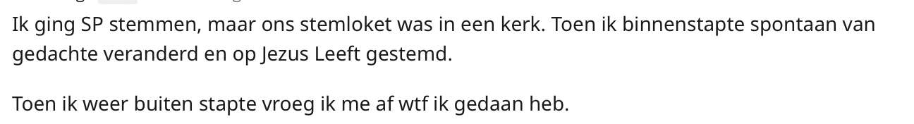 Ik denk dat dat nu ook zou komen door de Corona maatregelen en de groep die anti is. Die gaan nu massaal FvD stemmen, en kijken vaak niet verder dan de stellingen omtrent Corona. Heel dom, maar lees dat best veel