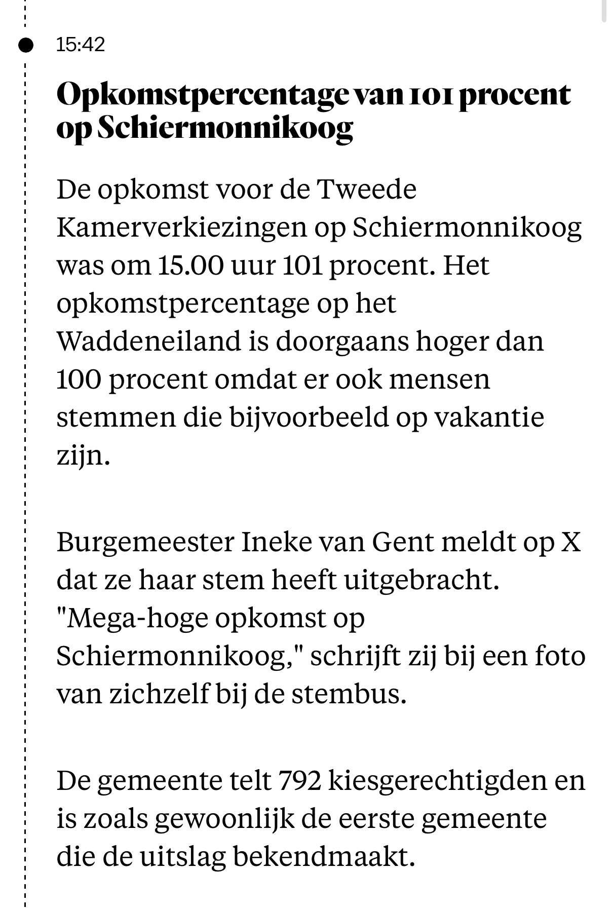 Ik ben net klaar met m’n shift op het stembureau. Je kon je dit jaar in mijn gemeente voor het eerst aanmelden voor een vroege shift of juist late middag-avond. Maakt het denk ik laagdrempeliger om je aan te melden. Goede opkomst en ik zat met gezellige boomers dus ik heb een topdag gehad. Nu maar hopen op een gunstige uitslag ![]()