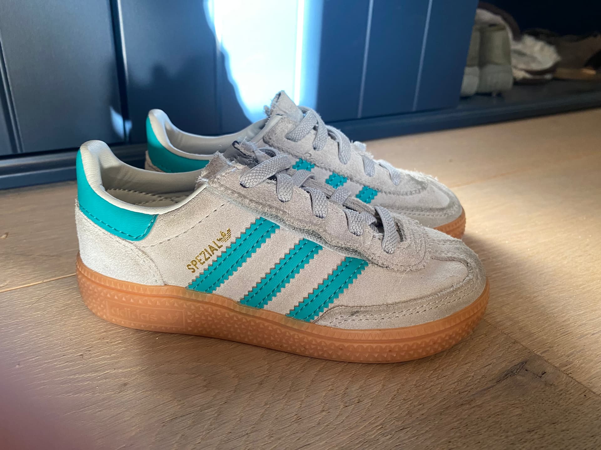 Ik verkoop deze Adidasjes in maat 25.5 (zoon heeft zelf net maat 26), twee keer gedragen en daardoor zitten er zitten een paar zichtbare vlekjes op. Ik dacht zelf aan €40?