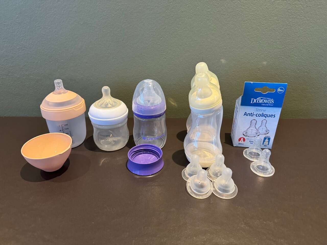 De flesjes zijn max 3 keer gebruikt. De dr Brown spenen in het doosje zijn nieuw.