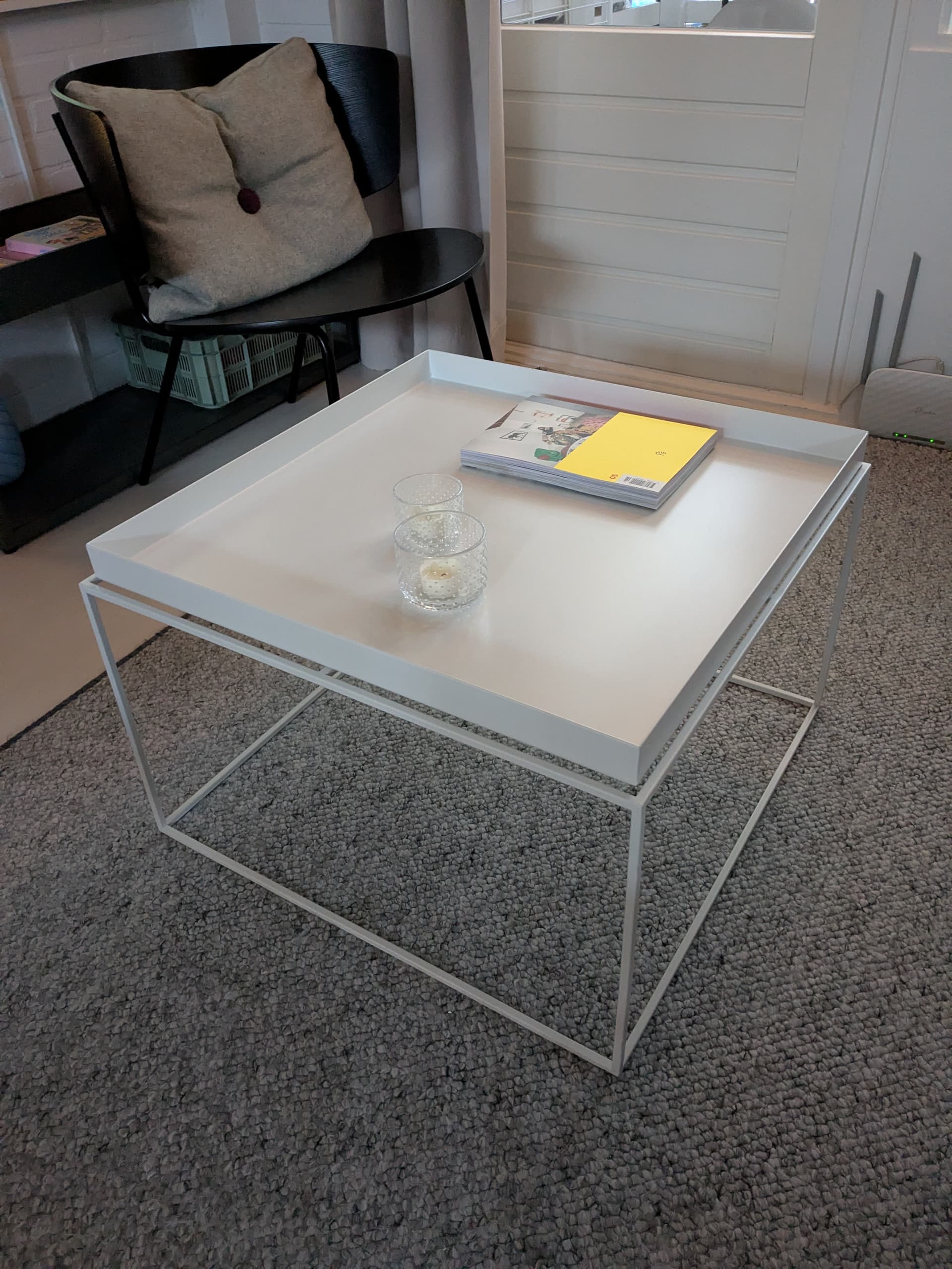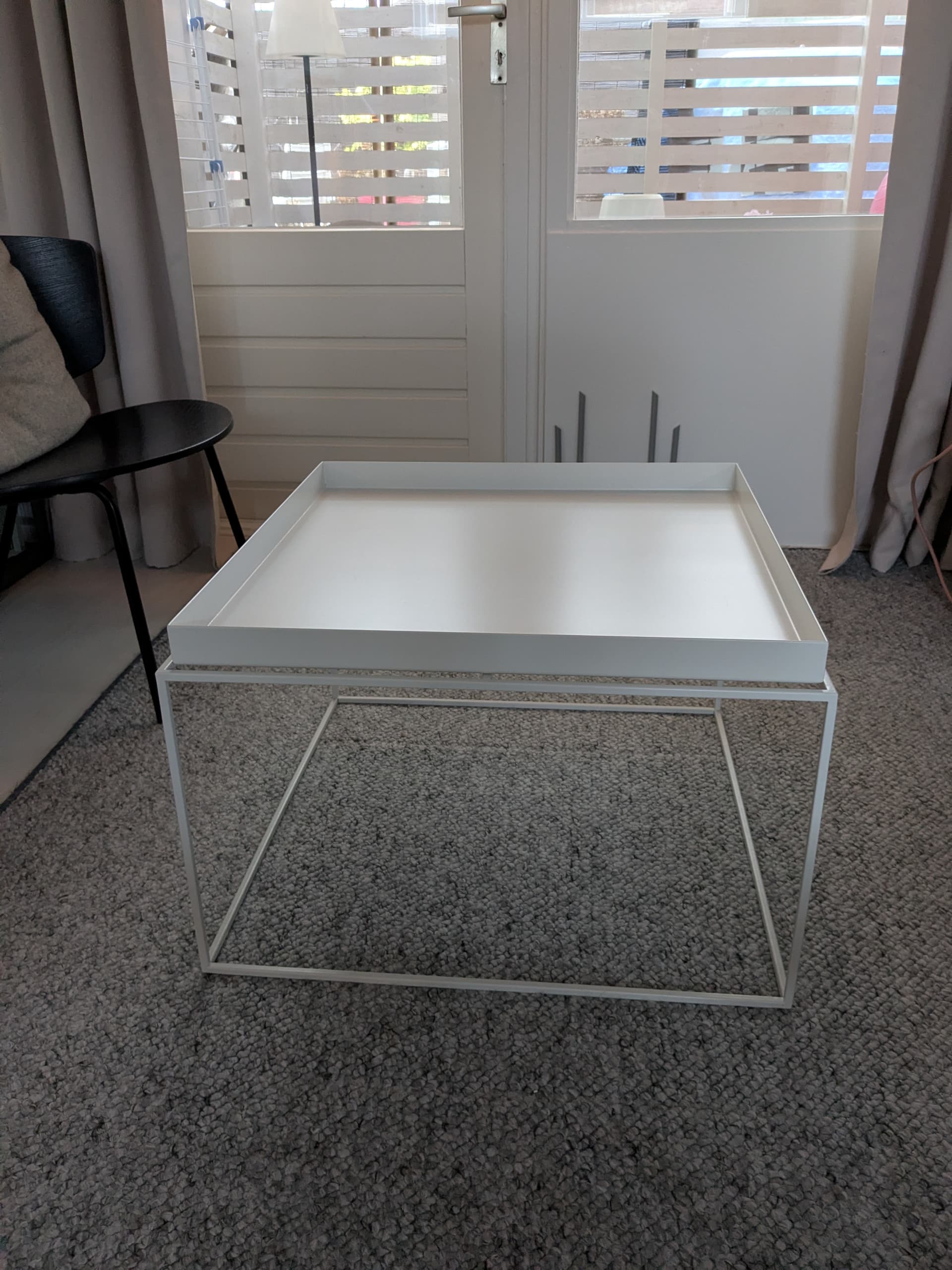 Ook heb ik nog een HAY Tray Coffee table in het wit, maat 60 x 60 cm. Ziet er ook nog netjes uit, op 1 hoekje waar een kleine beschadiging zit (zie foto’s).