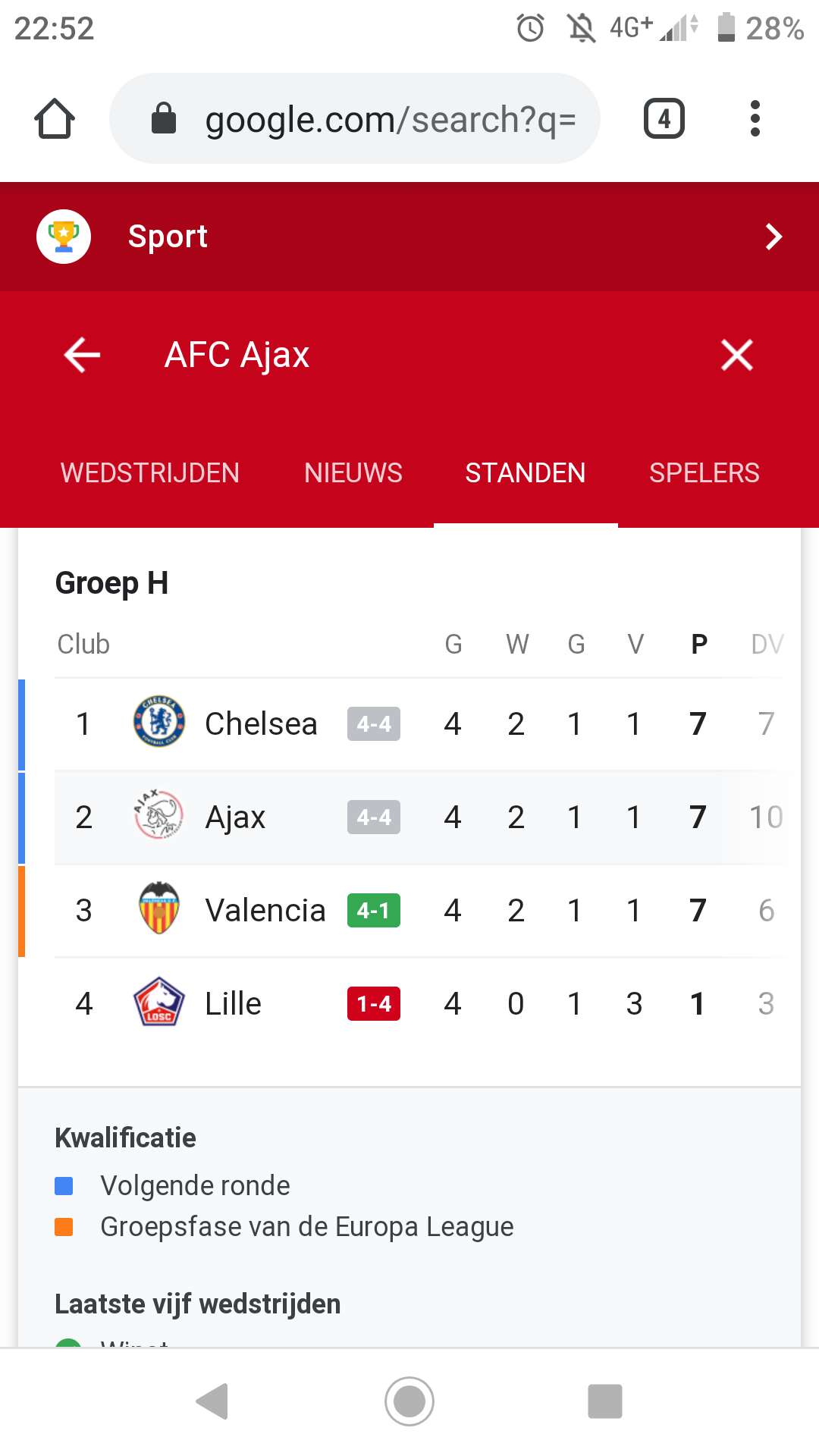 Nee, want nog niet alle wedstrijden in de poule zijn gespeeld toch?