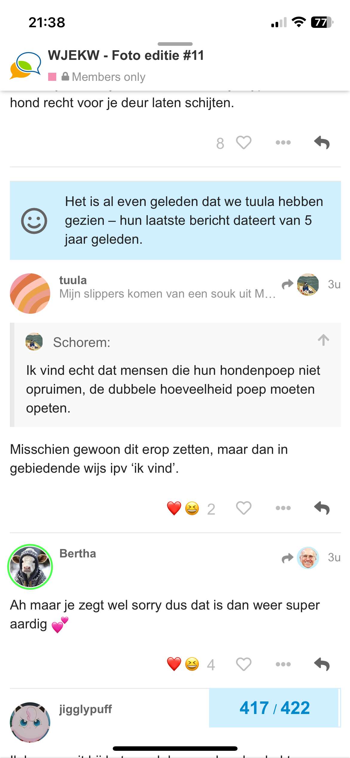 Gewoon uit nieuwsgierigheid: is dit een bug? Weet vrij zeker dat @tuula niet 5 jaar geleden voor het laatst gepost heeft ![]()