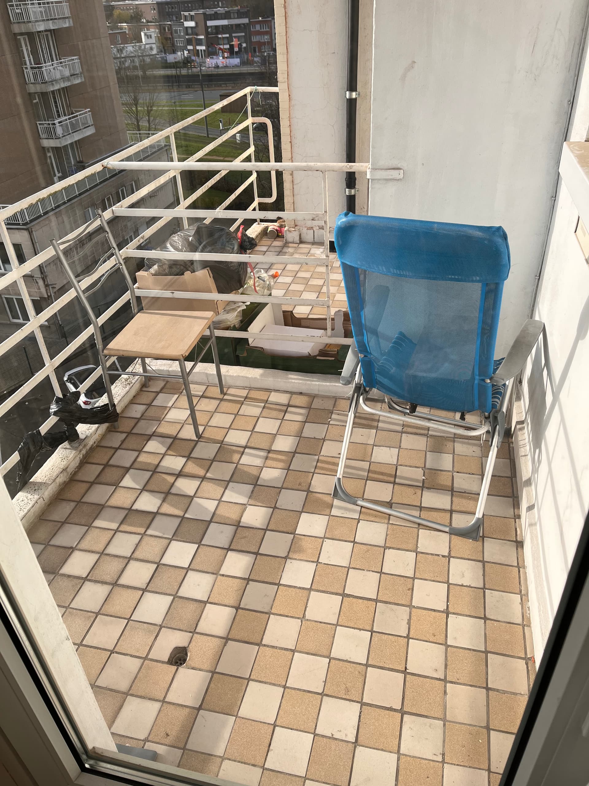 Mijn buurman heeft zijn zithoek geïnstalleerd op mijn balkon