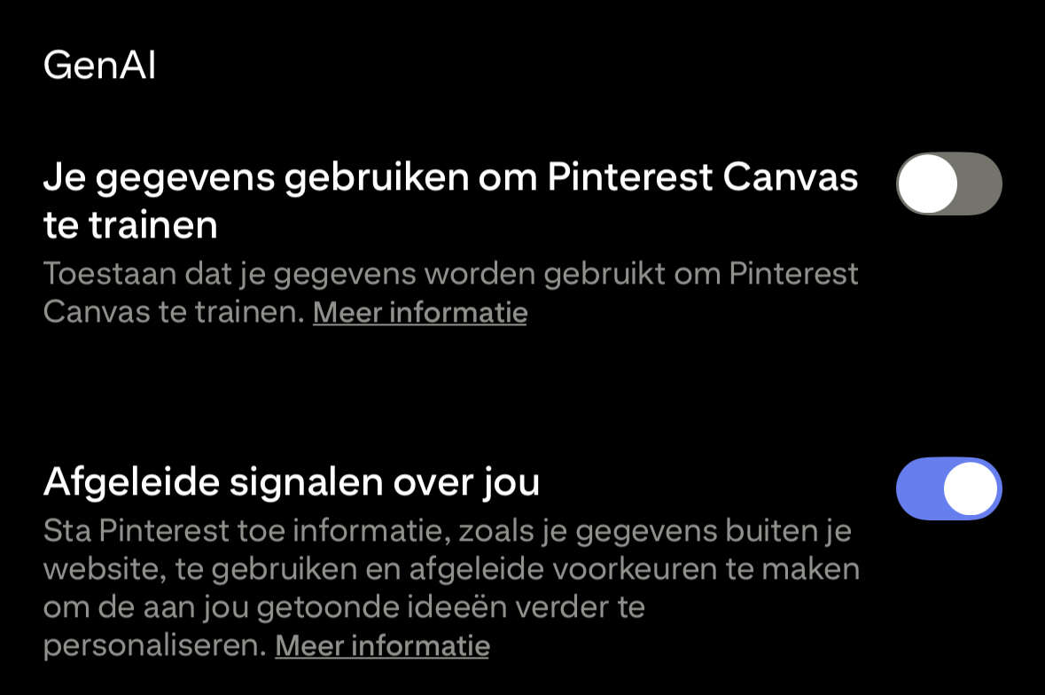 Ugh ja die optie had ik inderdaad ook uitgezet⦠Echt irritant dat hij nu ineens doet alsof hij niet kan afleiden wat ik leuk zou vinden om te zien aan de hand van de god weet hoeveel plaatjes die ik over de jaren heen al gepind heb, maar daar per se ook info van andere sites voor nodig heeft. ![]()