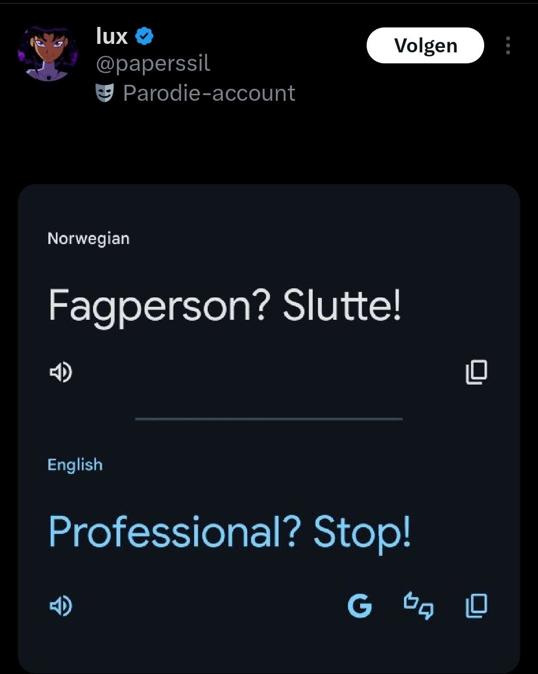 amerikanen die helemaal lachen om andere talen en van die domme vertalingen op twitter enzo. ja we snappen dat jij alleen engels spreekt maar er is nog een hele wereld buiten jullie ![]()