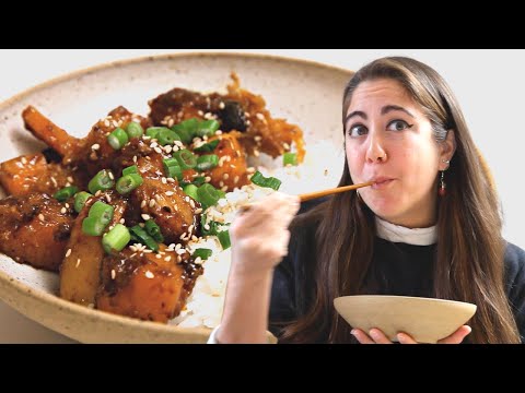 Het eerste gerecht uit deze video: pompoen in (kant-en-klare) gefermenteerde zwarte bonen en knoflook saus.
