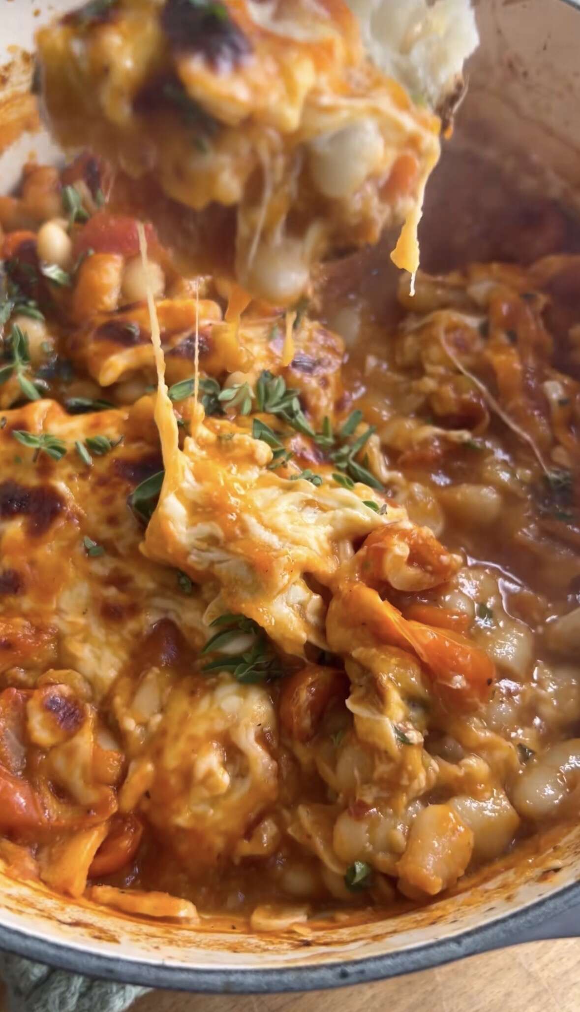 Cannellonibonen met kaas uit de oven. En dan met brood. Ik doe gewoon meteen het recept erbij: