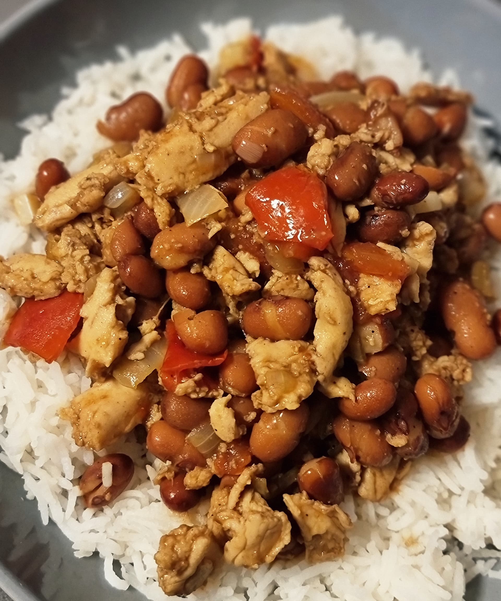 Mexicaanse bonenschotel. Ik had het heel lekker in mijn hoofd, maar mijn vriend heeft een ander recept gebruikt en nu is het veel minder lekker ![]()
