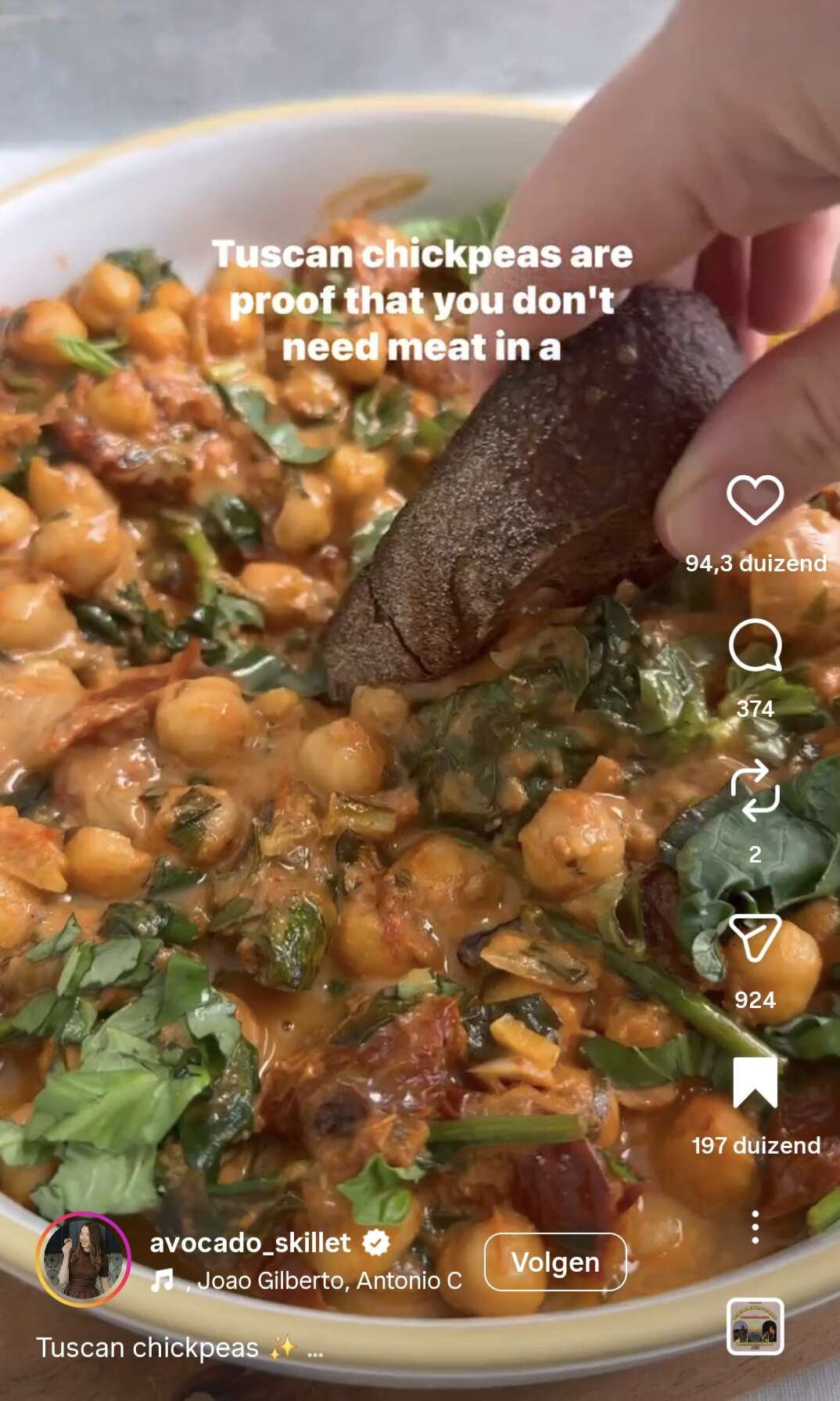 āToscaanseā kikkererwten met ciabatta, mijn nieuwe favoriet.