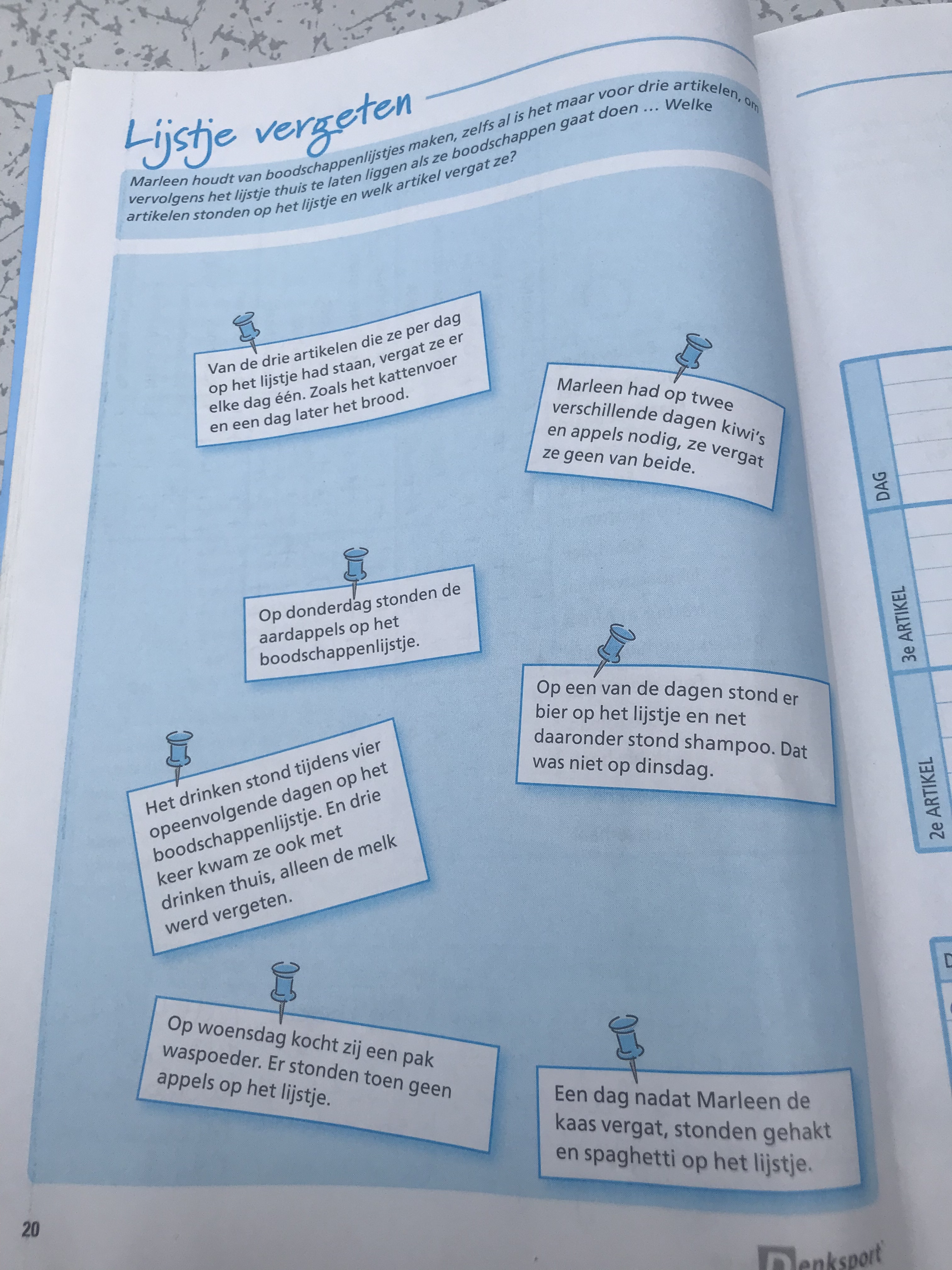 en volgens mij is hij echt niet op te lossen met de aanwijzingen die erbij staan en zit er dus een fout in. Dus ik zit er serieus over na te denken om de Denksportredactie te mailen :’)
