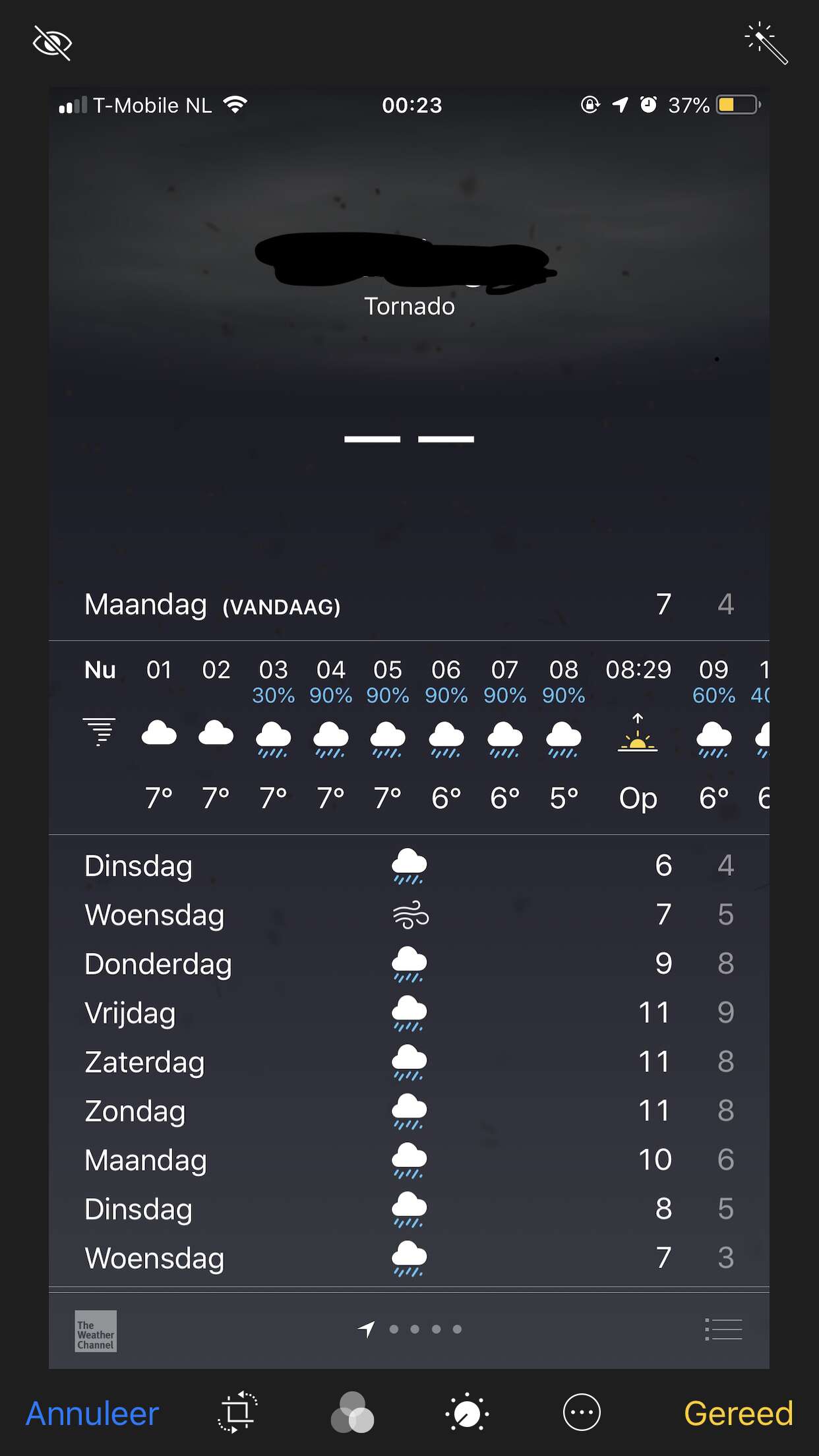 Ik keek begin van de nacht even op de iPhone weer app om te zien of het zou regenen in de ochtend. En toen zag ik dit: