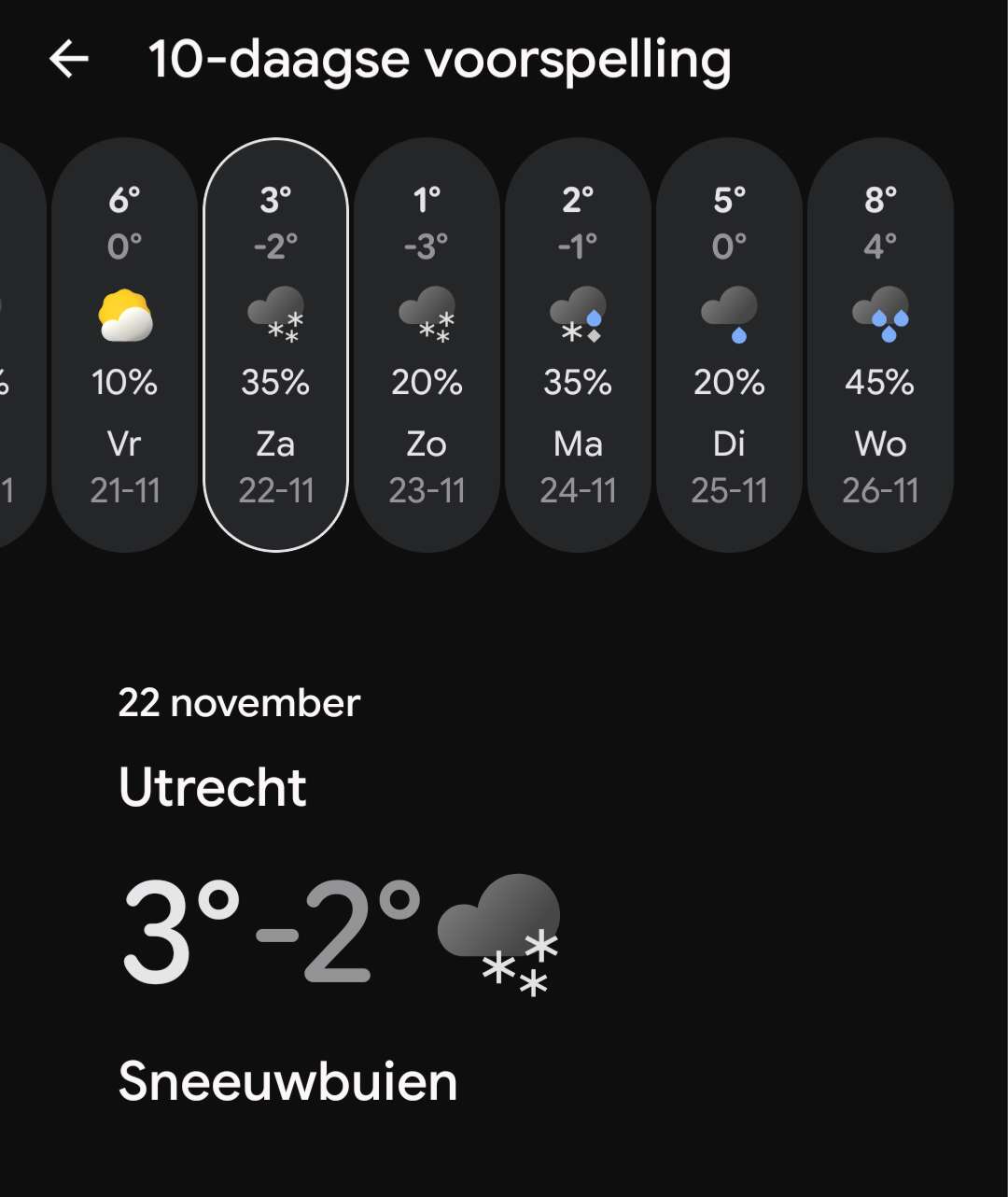 Houd het vooral in Utrecht. Ik heb geen zin in sneeuw