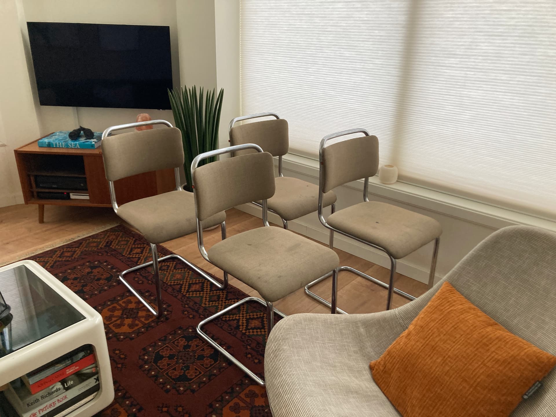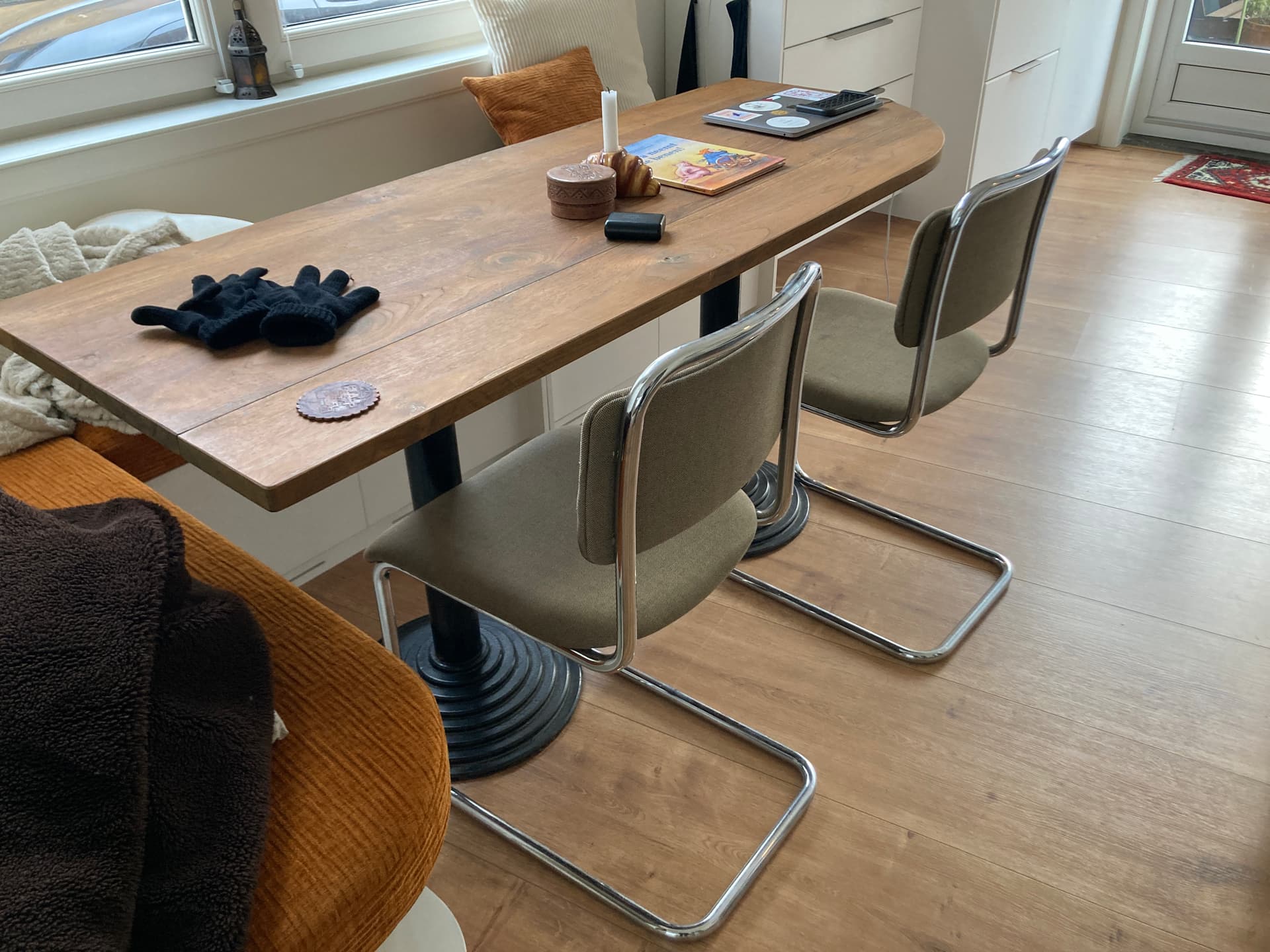 Net tijdens het ochtendrondje met m’n hond deze stoelen gevonden die bij het grofvuil stonden. Toevallig zijn het precies de stoelen die ik al wilde hebben en volgens Chatgpt zijn het geen replica’s. Zitten alleen wel lelijke vlekken op, dus ik ga ze denk ik opnieuw laten stofferen.