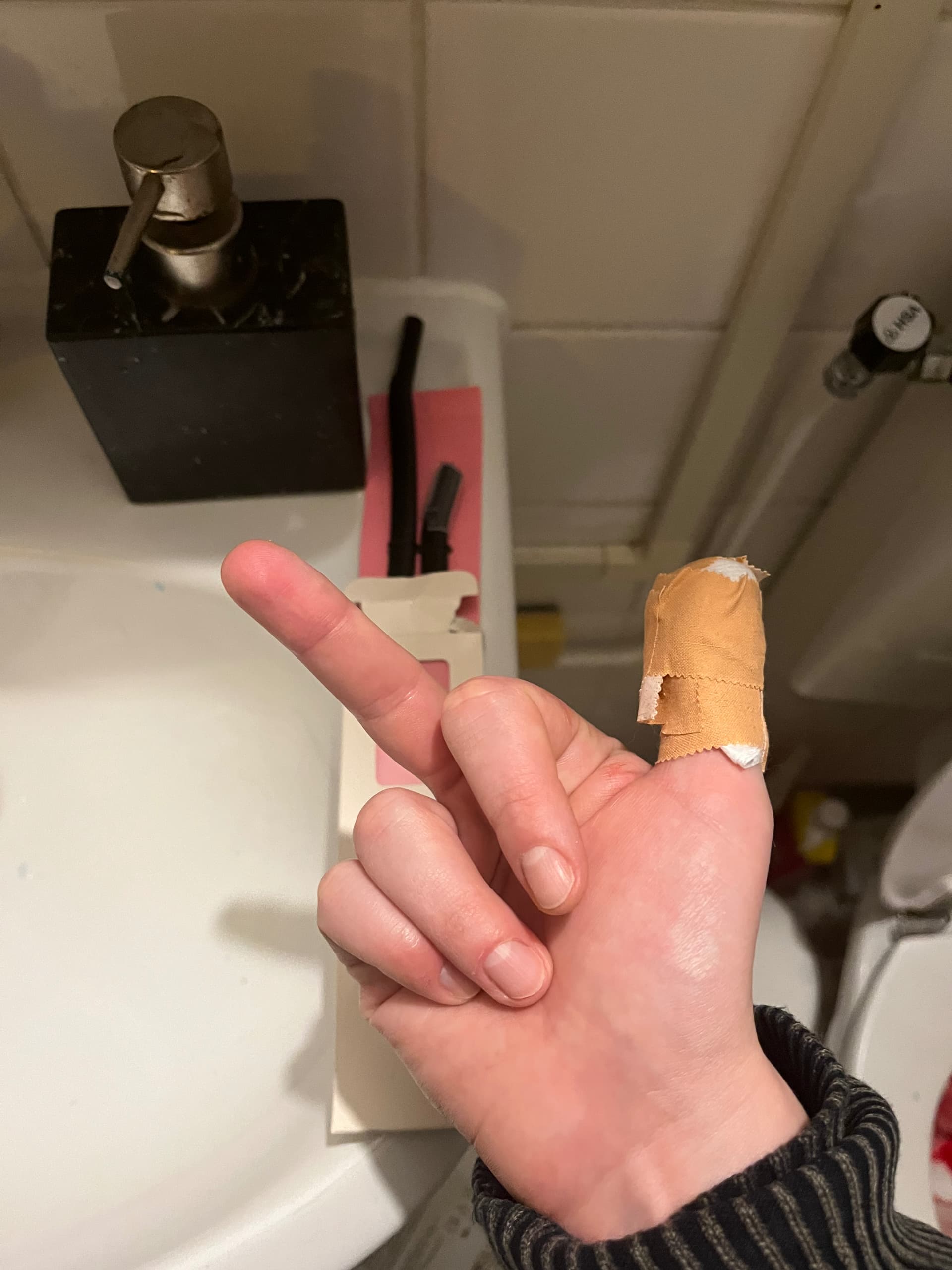 Met scheermes openen, in mn duim gesneden. (Wilde die wenkbrauw scheren gvd)