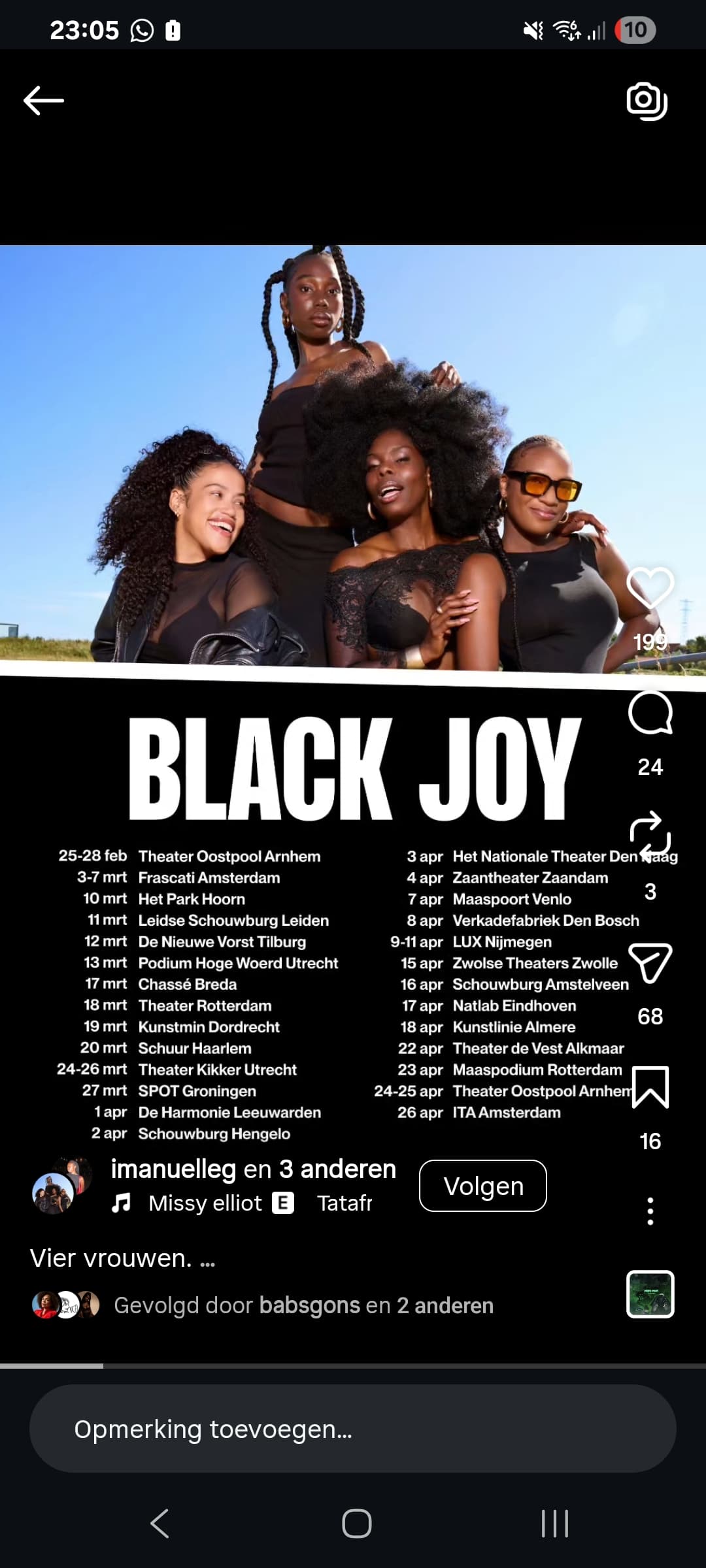 Ik was naar de theatervoorstelling Black Joy en het was zoān ontroerend en bijzonder theaterstuk. Wat niet alleen over traumas delen ging maar ook over plezier en familieleven. Echt een aanrader!