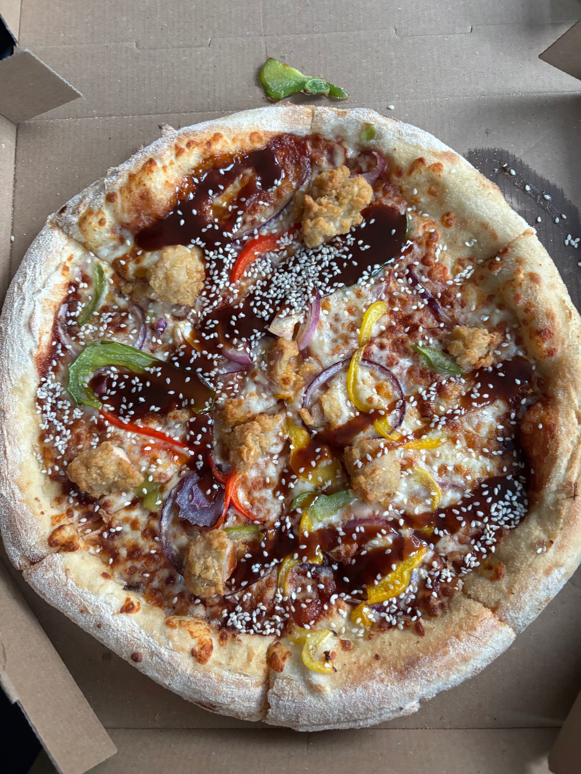 Pizza bestellen bij new york pizza op zaterdagavond is een slecht plan. Dessert is niet bezorgd want die was op blijkbaar (wel voor betaald) en de pizza is half belegd?