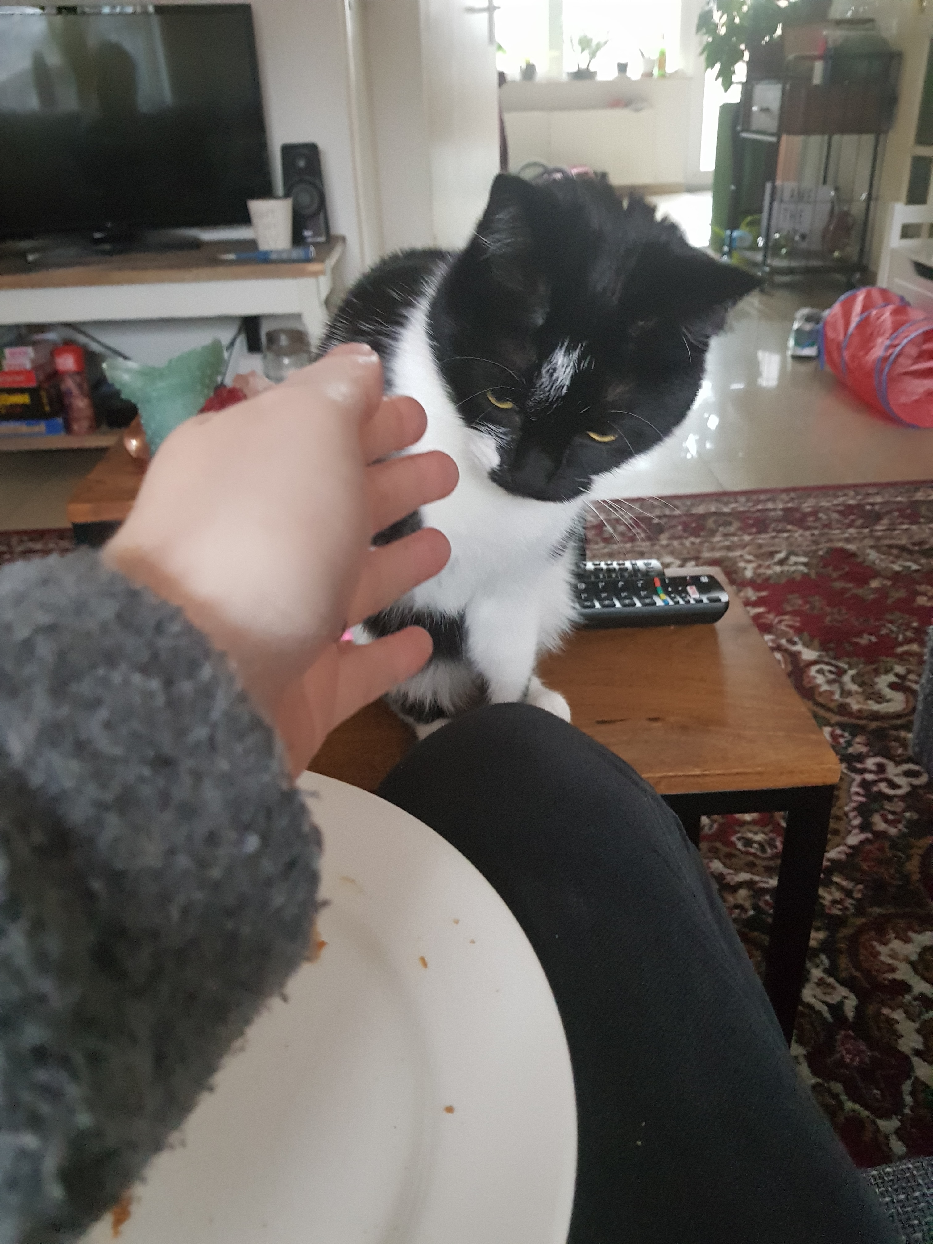Mijn kat is zich momenteel in allerlei bochten aan t wringen om mijn bord af te kunnen likken dus at least someone here likes it.