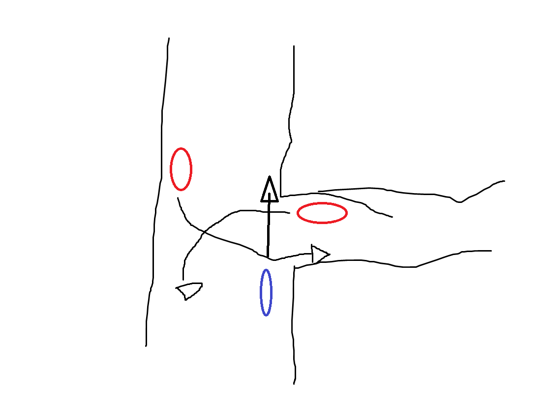 wie heeft er voorrang in deze situatie? rood = auto en blauw = fiets