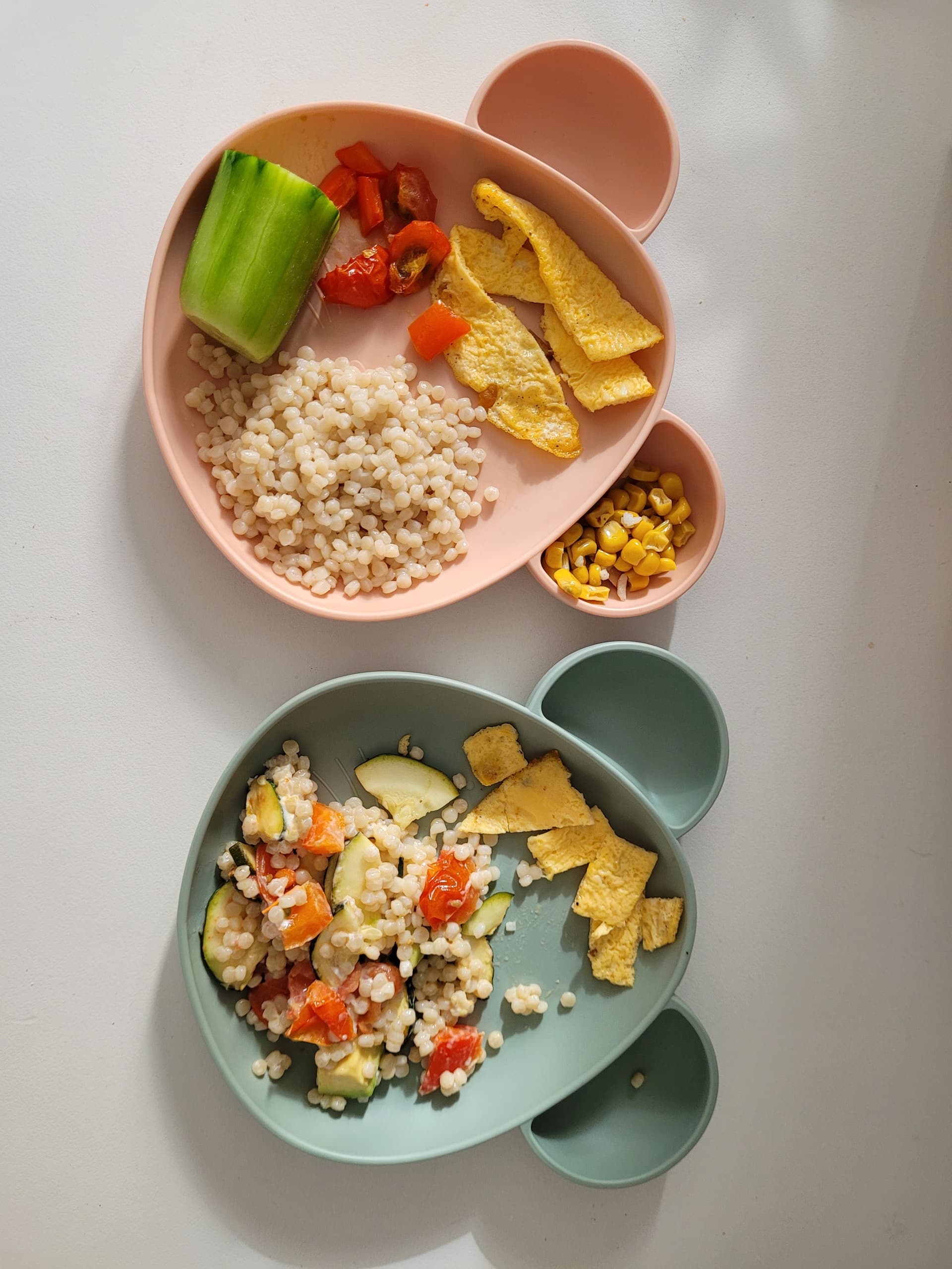 Avondeten was parelcouscous met groenten uit de oven en wat geitenkaas en avocado. Was de bedoeling met kikkererwten maar die was ik vergeten te kopen. Voor de oudste de boel gescheiden en wat mais en komkommer erbij want de groente uit de oven eet ze toch niet. De omelet was over van de lunch, die hadden ze toen beide niet aangeraakt, dus dat er maar bij gedaan.