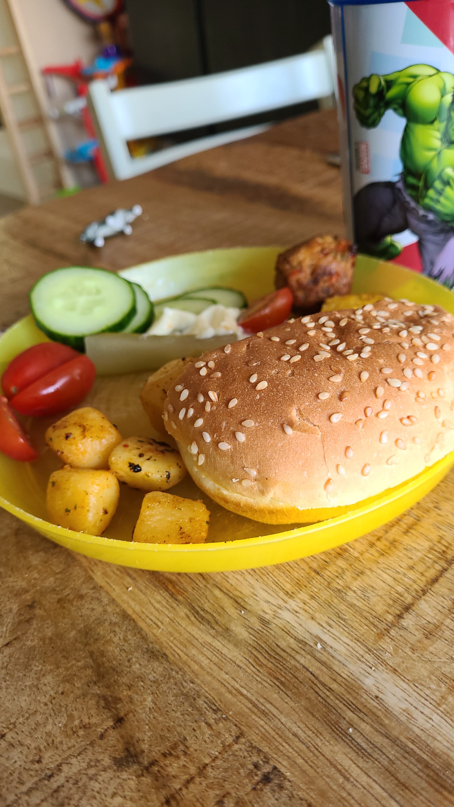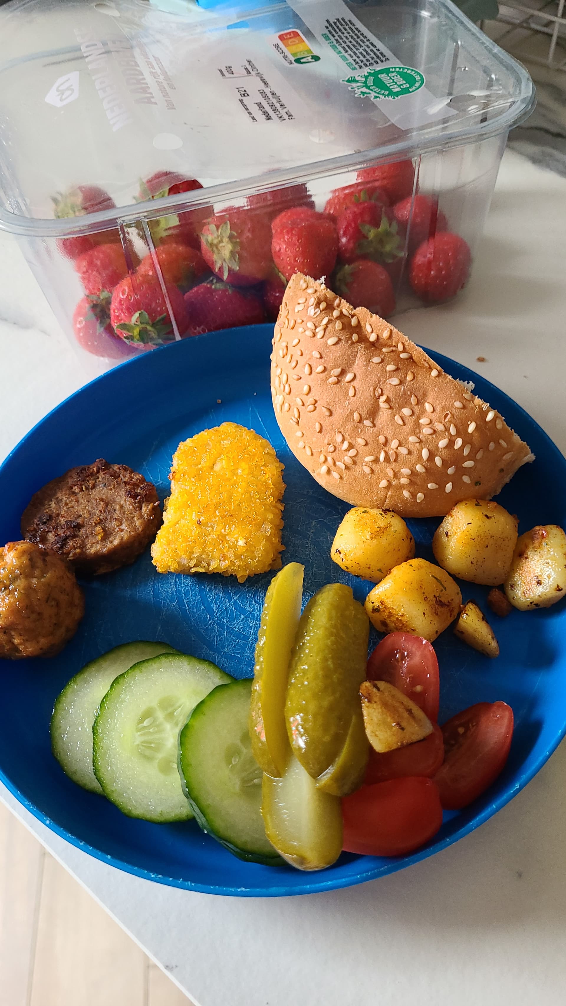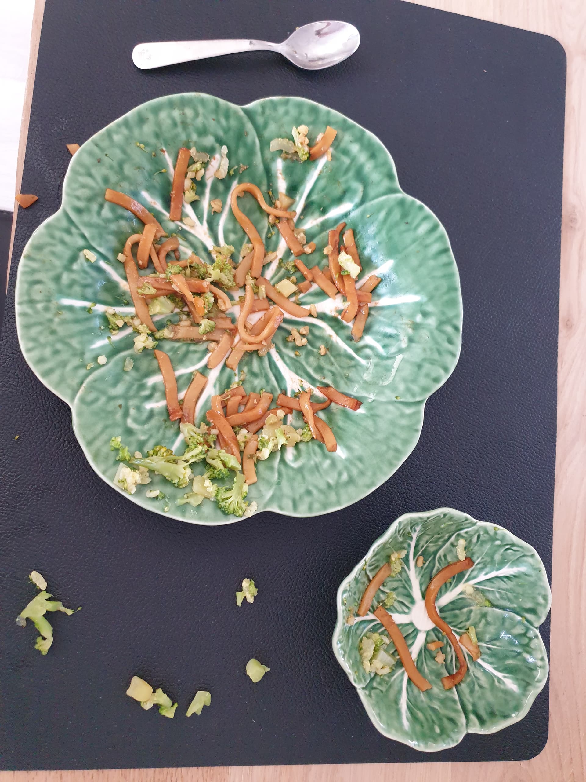 De ovengroenten bleven liggen maar verder ging het op. Met de lunch hadden ze weinig gegeten en daarna waren ze naar de opvang dus ik denk dat ze flink trek hadden.