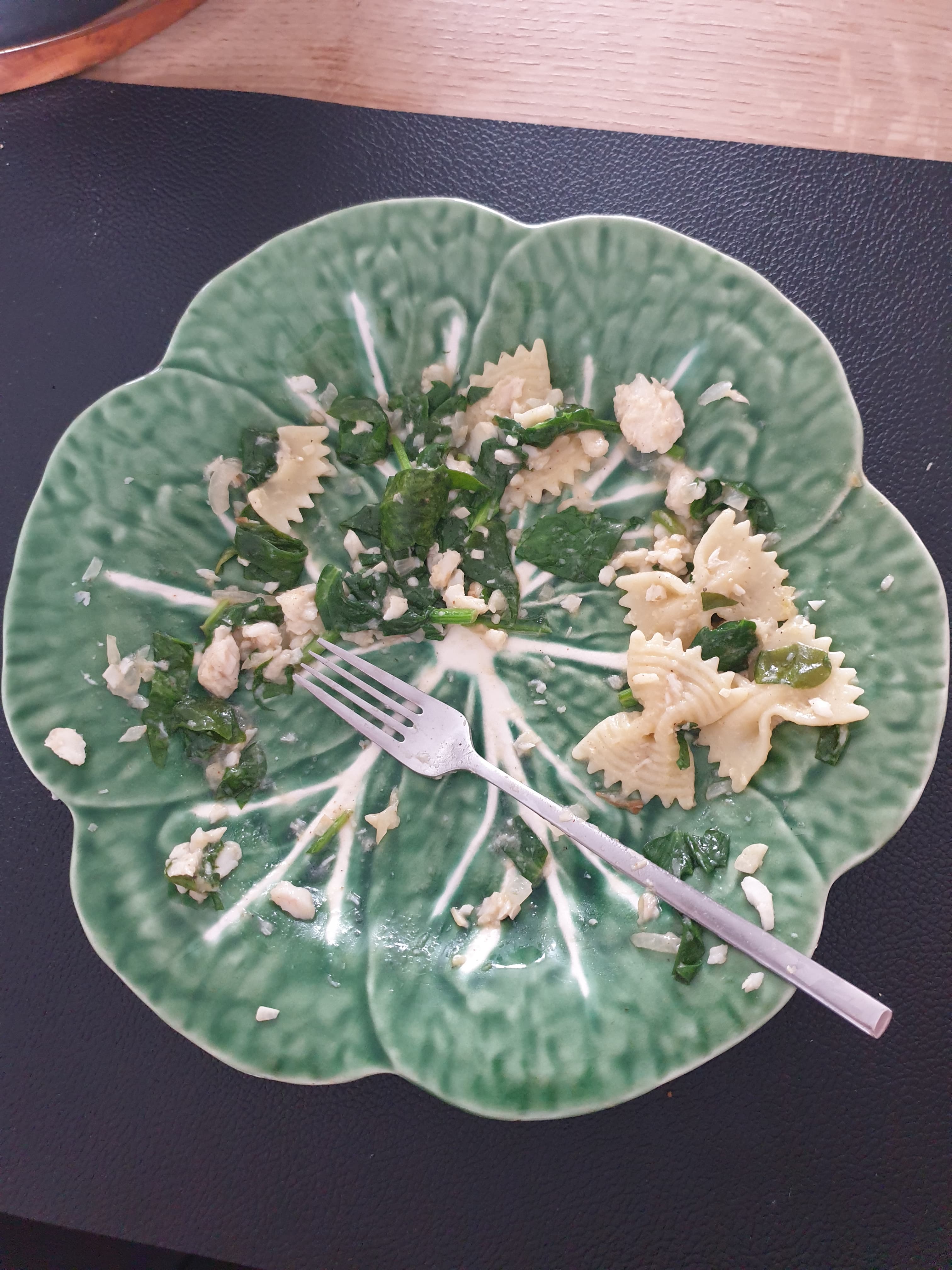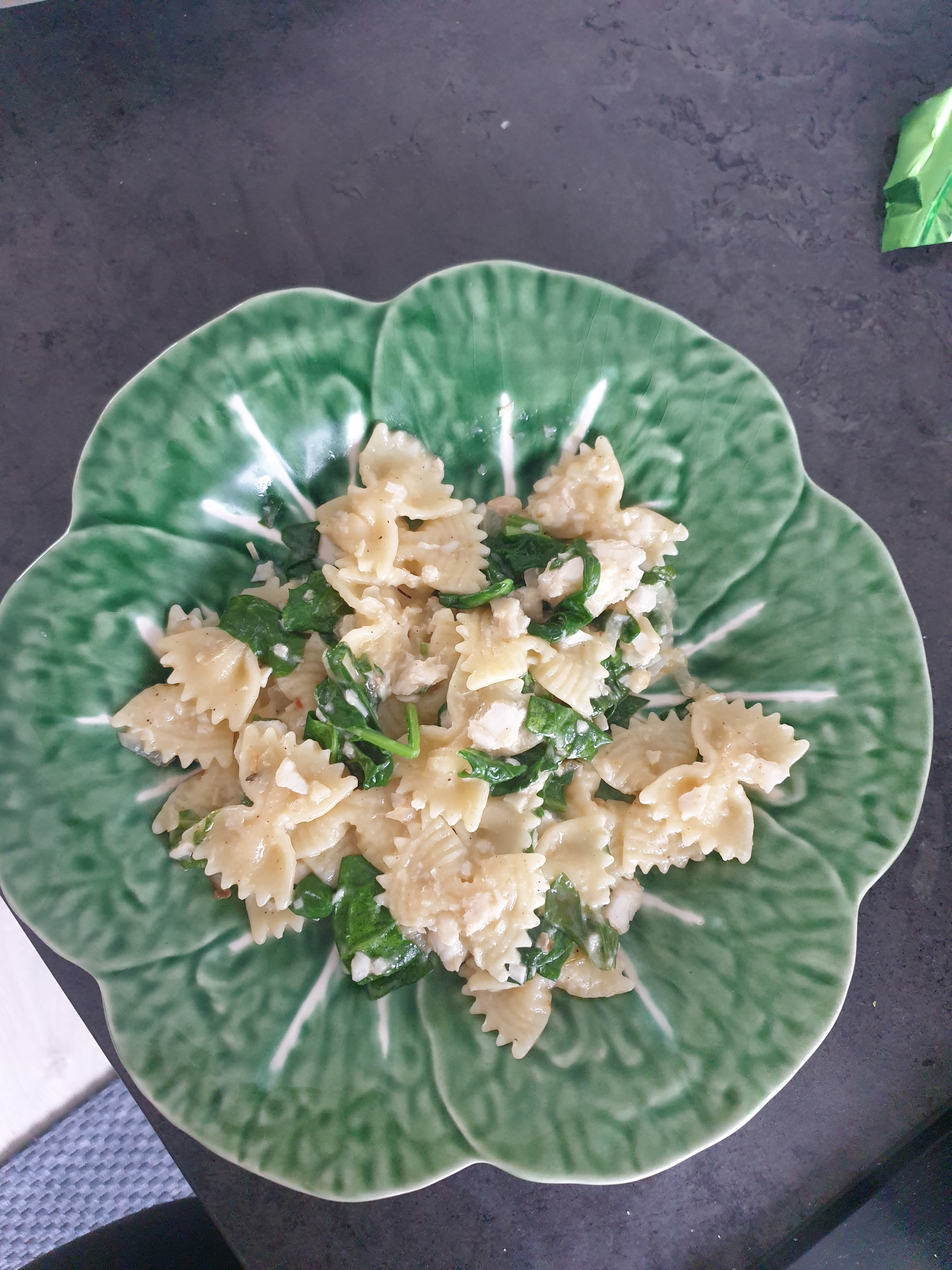 Heb ook besloten om gewoon meer met de pkt mee te laten eten en dus niks los van elkaar te geven en het ging vandaag heel goed! Farfalle met pangafilet in kokosroom, spinazie en kruiden. Was veel lekkerder dan het eruitziet overigens haha.