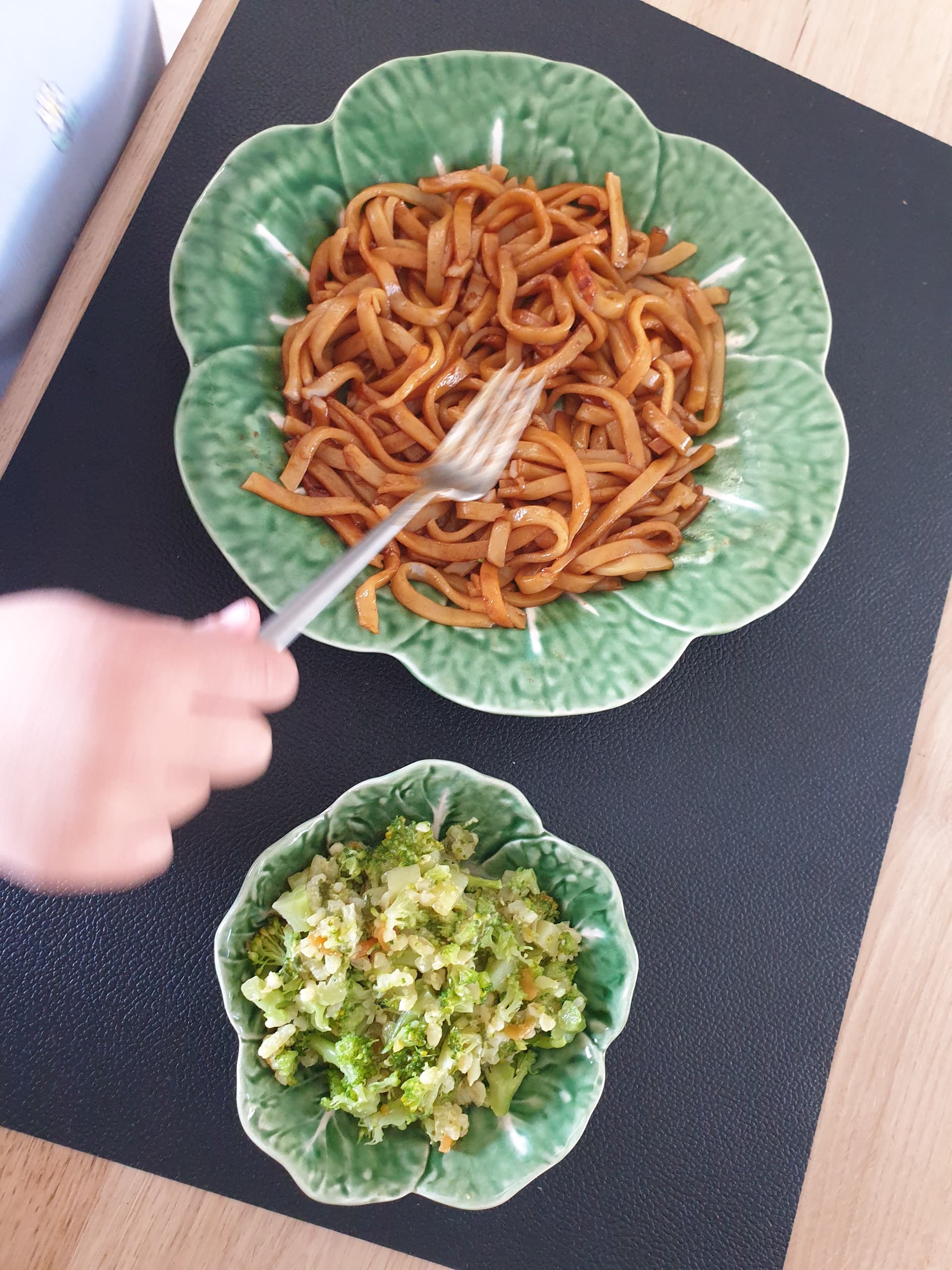 Oudste moest zoals verwacht niks van de groente en de vega burger hebben, ze at wel spaghetti met een beetje saus (meestal is dat ook een no go) en heeft nog wat extra spaghetti gehad.