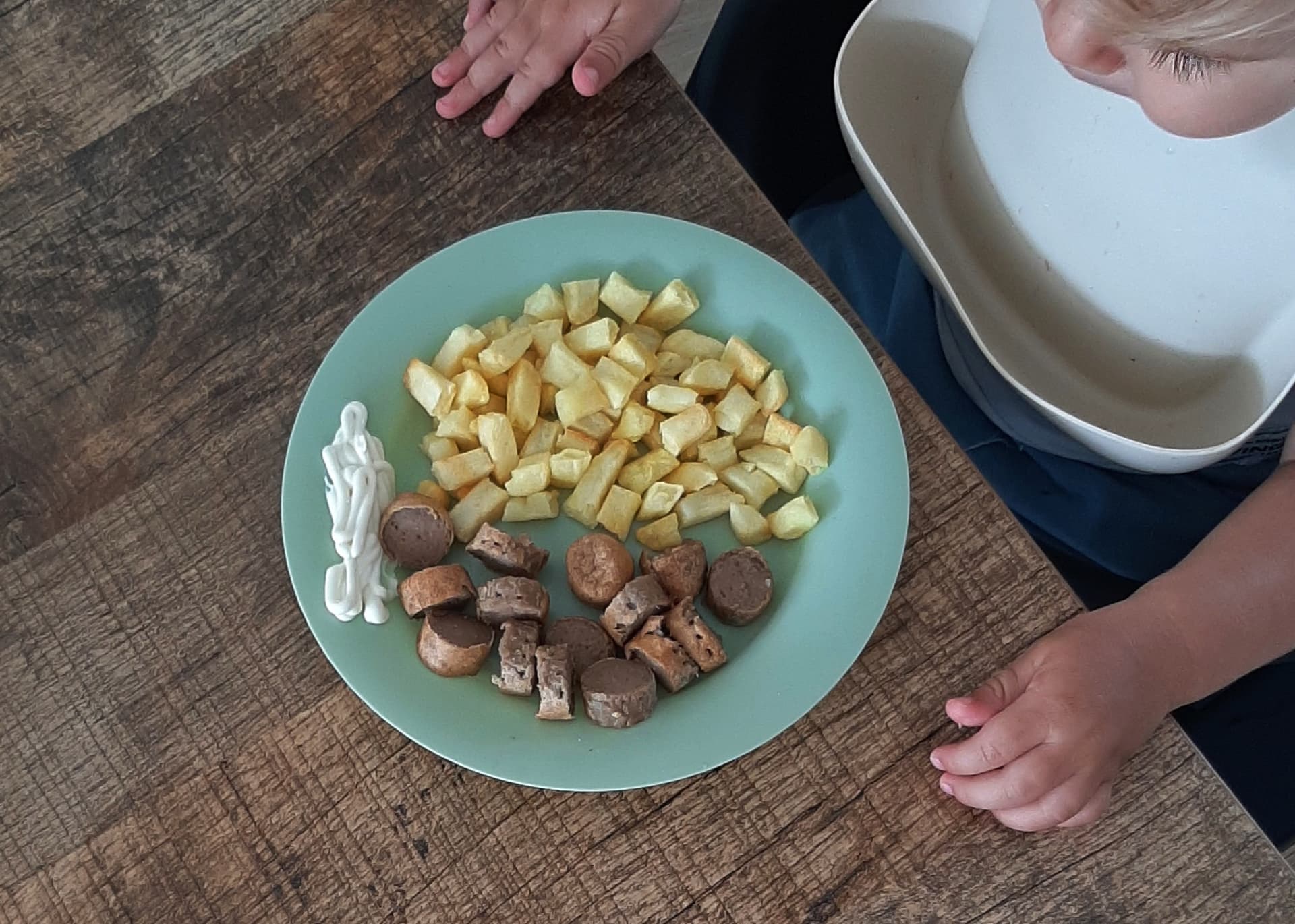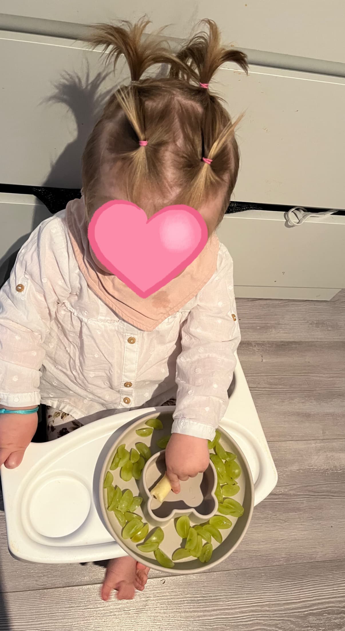 Hier leefde ze van 1,5 tot ver na 3 op melk, boterhammen met pindakaas, druiven en banaan. Als avondeten soms droge pasta of rijst, en natuurlijk wel honger als er koeken, friet of pannenkoeken gegeten werden. Er was toen mogelijk sprake van een koemelk- en pinda allergie en ik heb gehuild van wanhoop want dan zou ze niets meer kunnen eten.