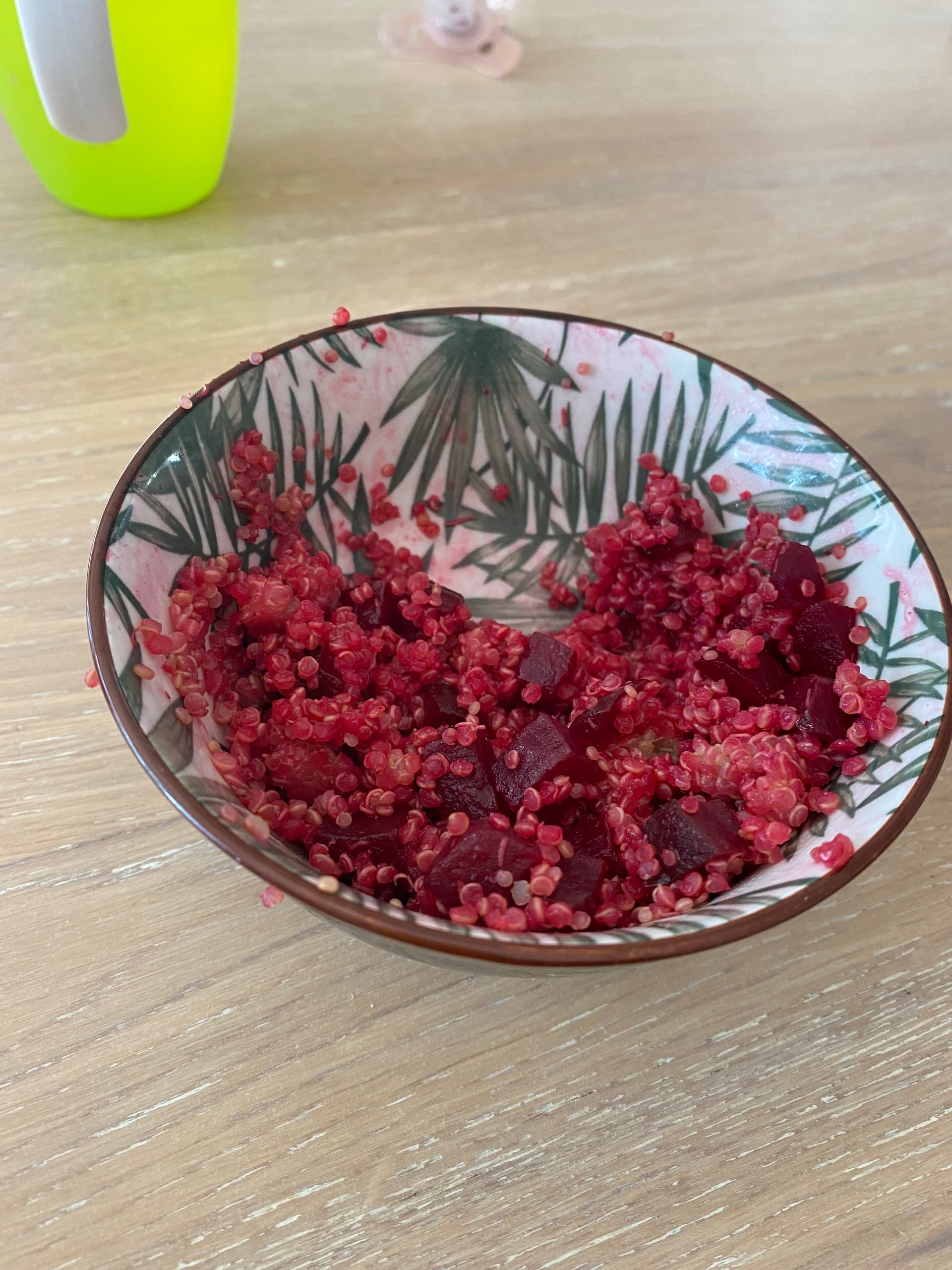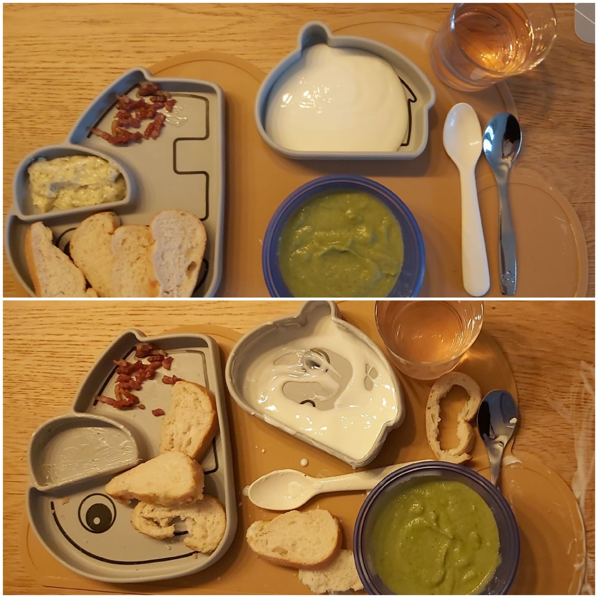 Ik vind ‘t zo heerlijk dat zo ongeveer iedereen hier hetzelfde kinderservies heeft, haha. Net of ik naar ‘t eten van m’n eigen kind kijk.
