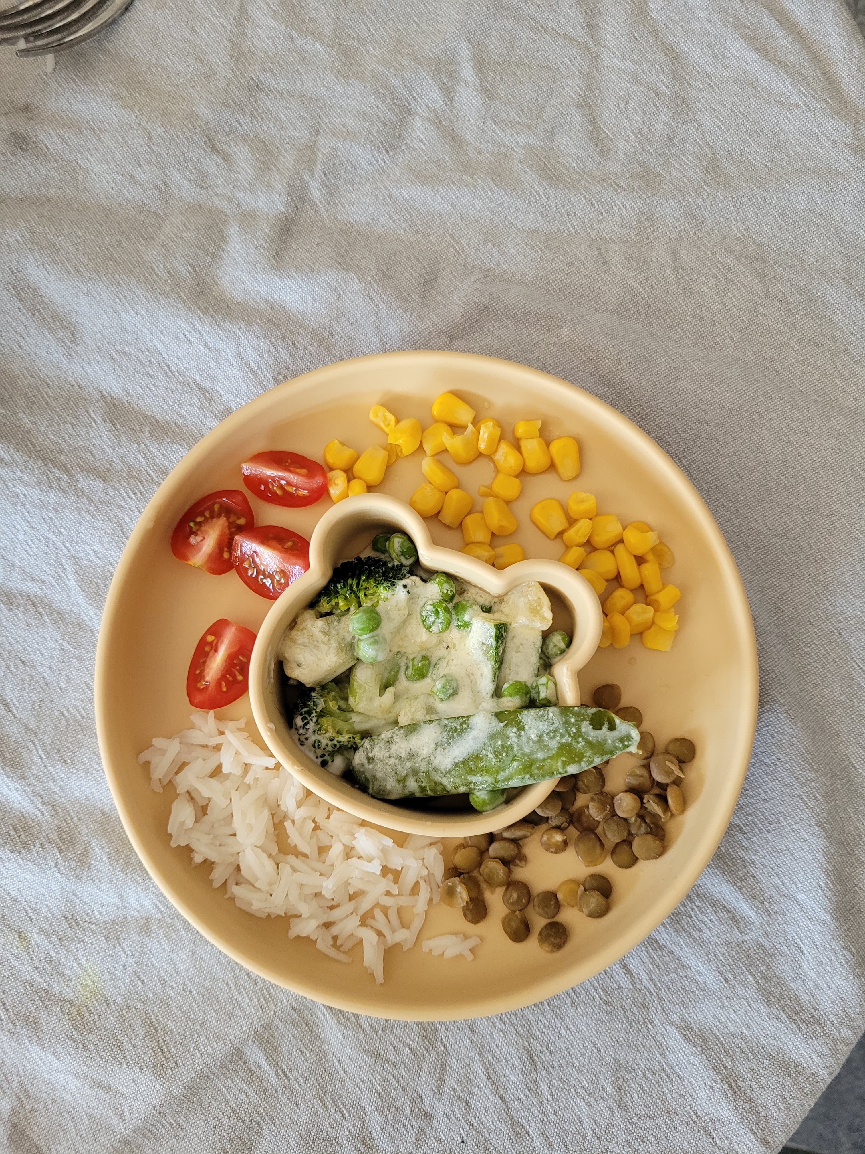 Nee wij eten gewoon dezelfde (dus wel met bouillon en zo). Ik maak altijd met zo’n verspakket van de supermarkt, haha. Alleen voor onszelf doe ik er dan nog extra peper doorheen, dat laat ik voor haar achterwege.