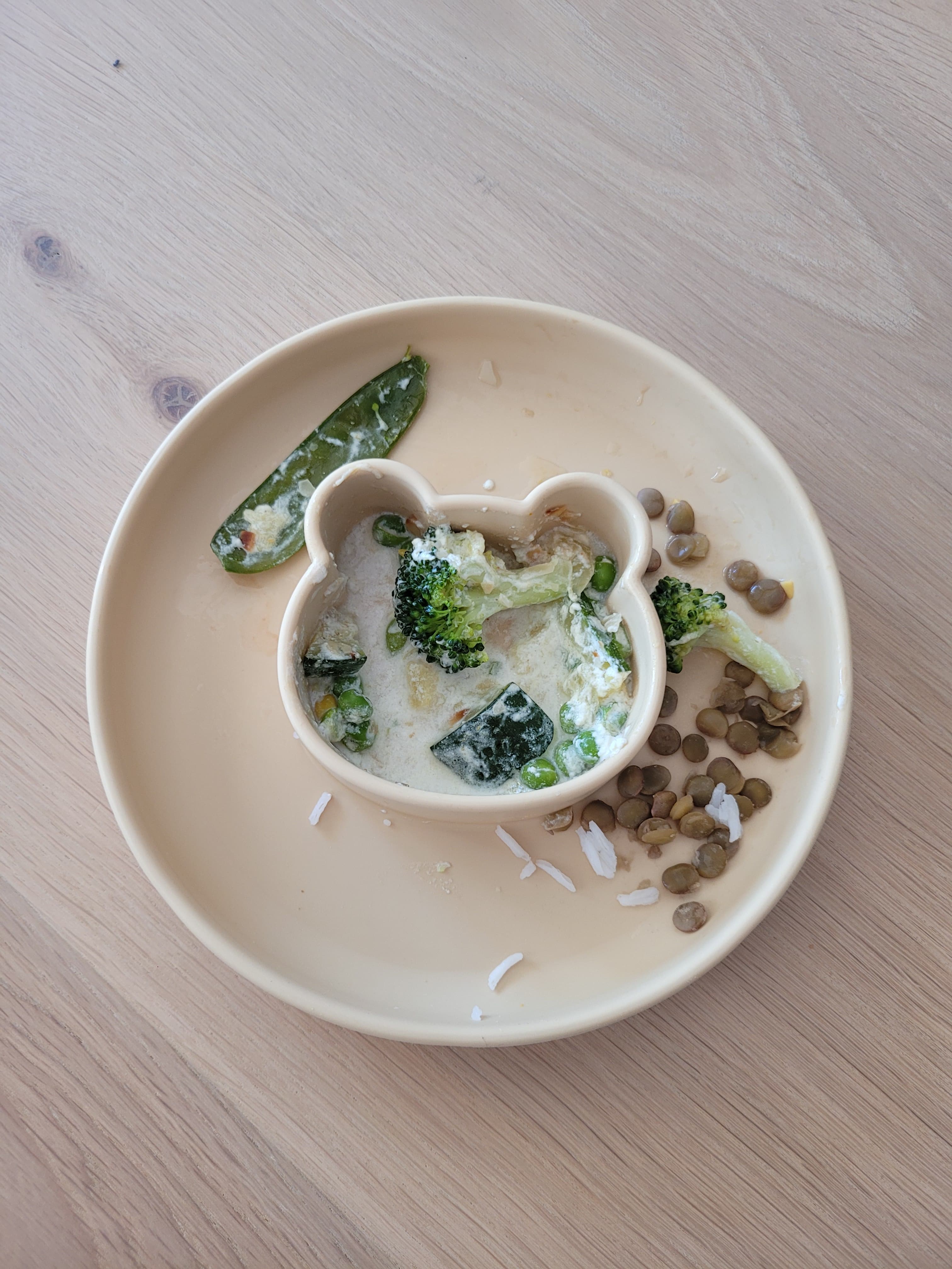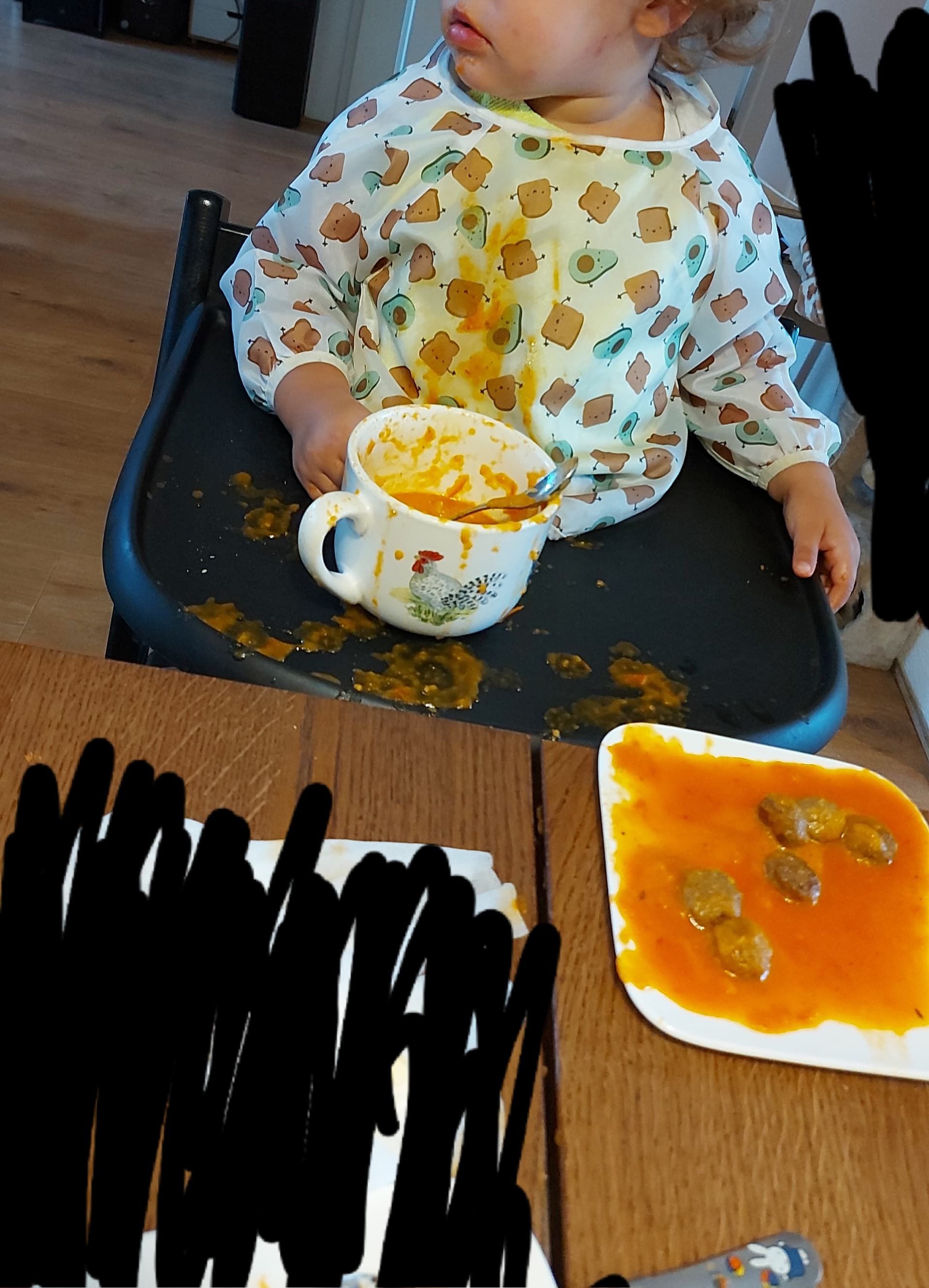 Ik laat ‘m nu langzaam steeds meer van ons eten proeven en mee eten als dat kan en dat gaat goed. Dus leuk om ook eens soep te proberen!