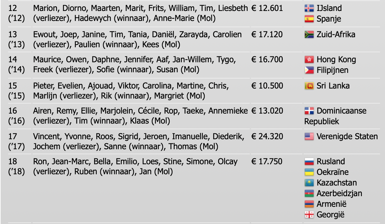 2008 met Dennis Weening als mol en 2009 vond ik ook heel leuk.